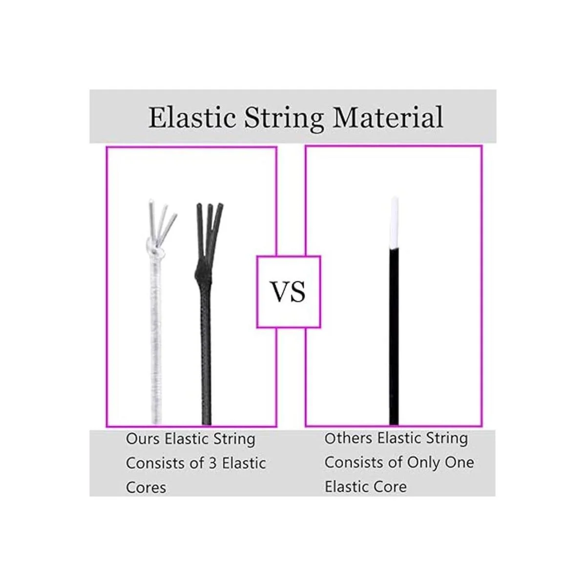 Amplias aplicaciones: cuerda elástica para pulseras, cuentas, manualidades, bolsas de cordón, pulseras, joyas de cuentas de pony, lazos para el pelo y correas de sombrero de fiesta.
