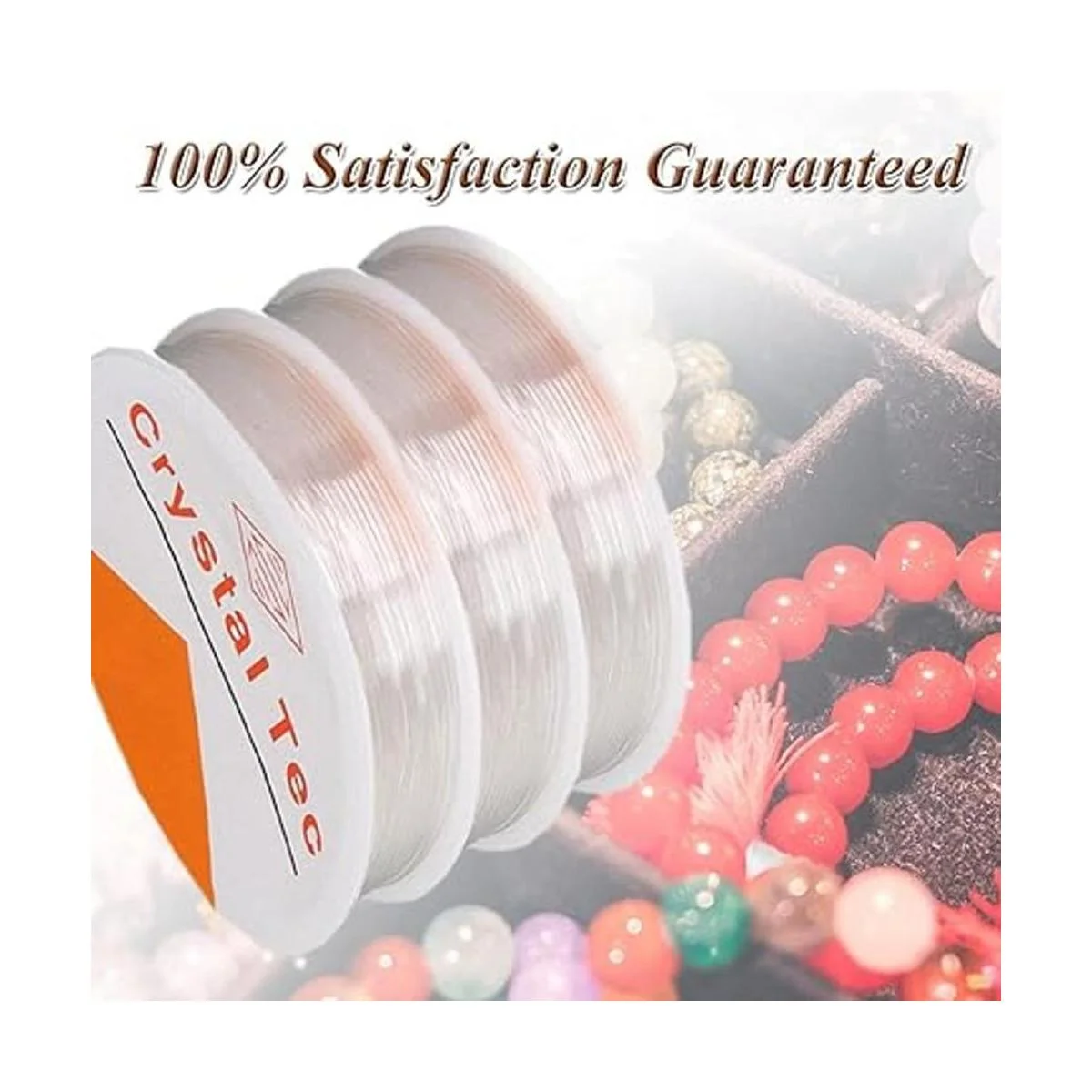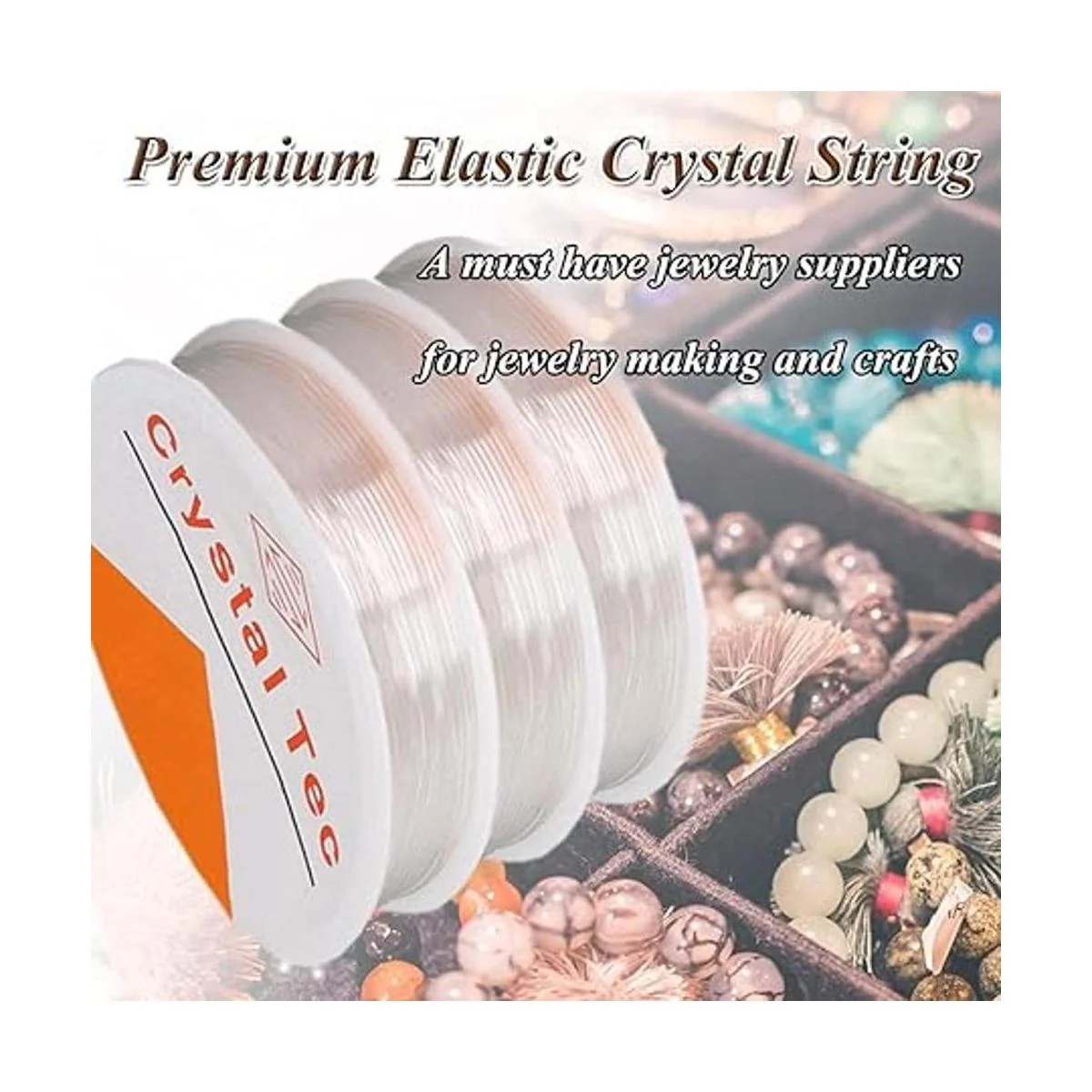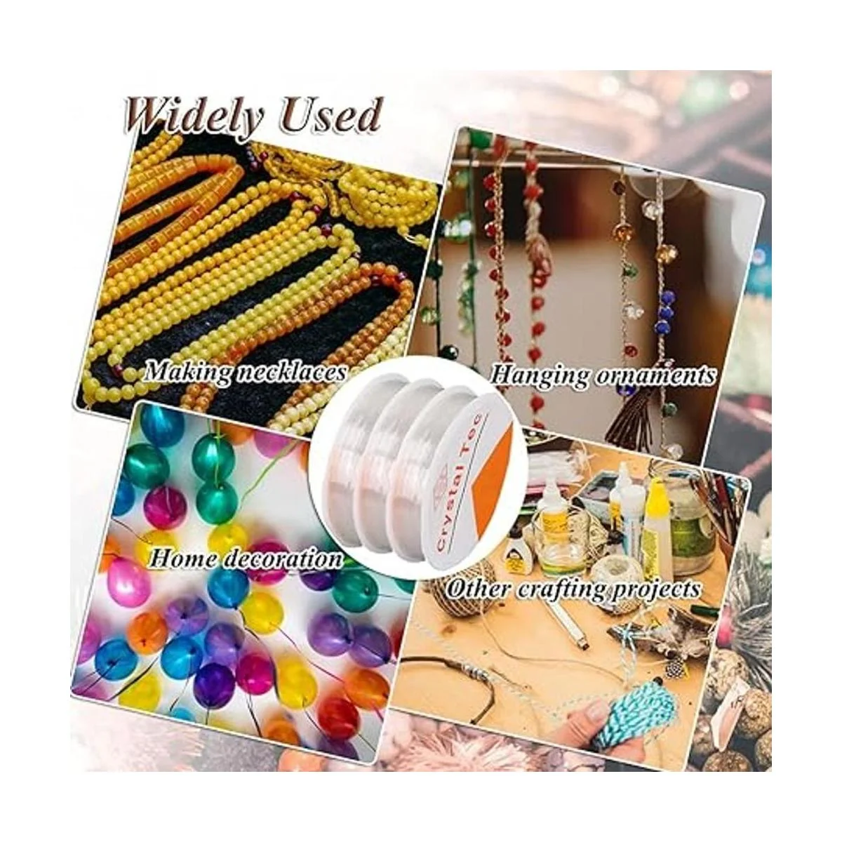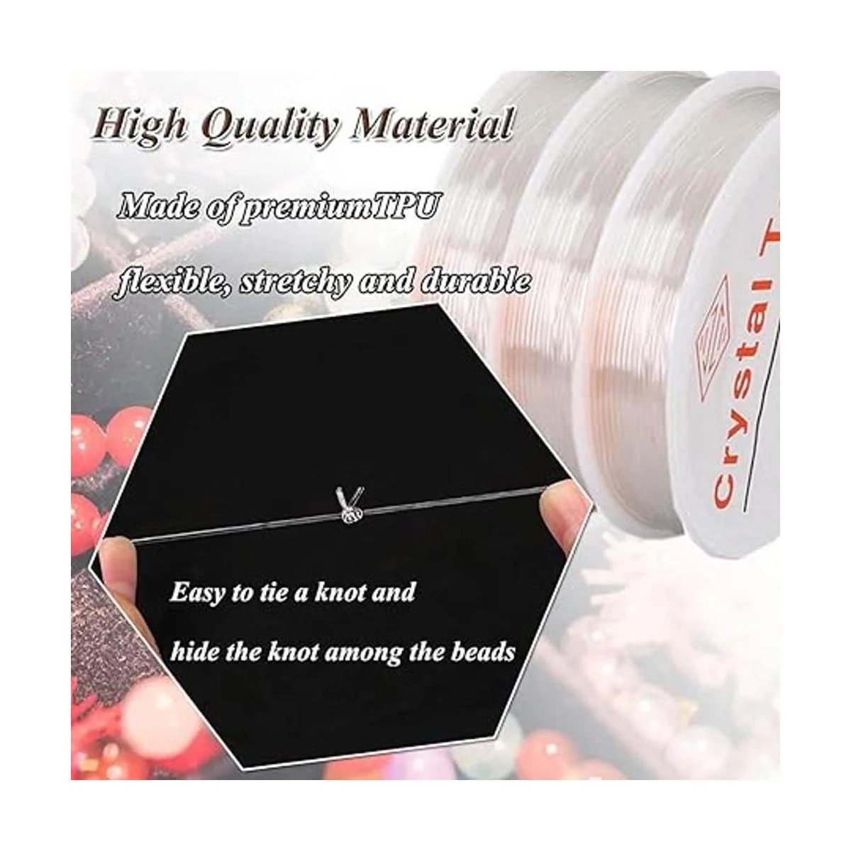 Cuerda elástica de alta calidad para la fabricación de joyas. Estos alambres de joyería están hechos de TPU de alta calidad, que es transparente en apariencia, es flexible, elástico y fácil de anudar, fuerte de sostener y difícil de romper, el aspecto de cristal hace que sea perfecto como cuerda de pulsera, hilo de cuentas o para hacer joyas.