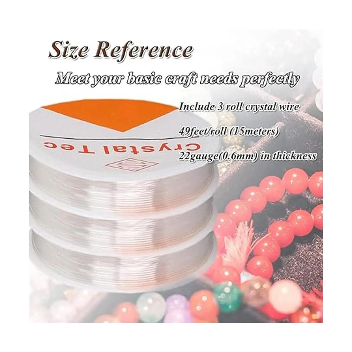 Referencia de tamaño: nuestro juego de alambre elástico para manualidades incluye 3 rollos de alambre de cristal, rollo de 49.2 ft, calibre 22 0.024 in de grosor, que puede satisfacer perfectamente tus necesidades básicas de manualidades.