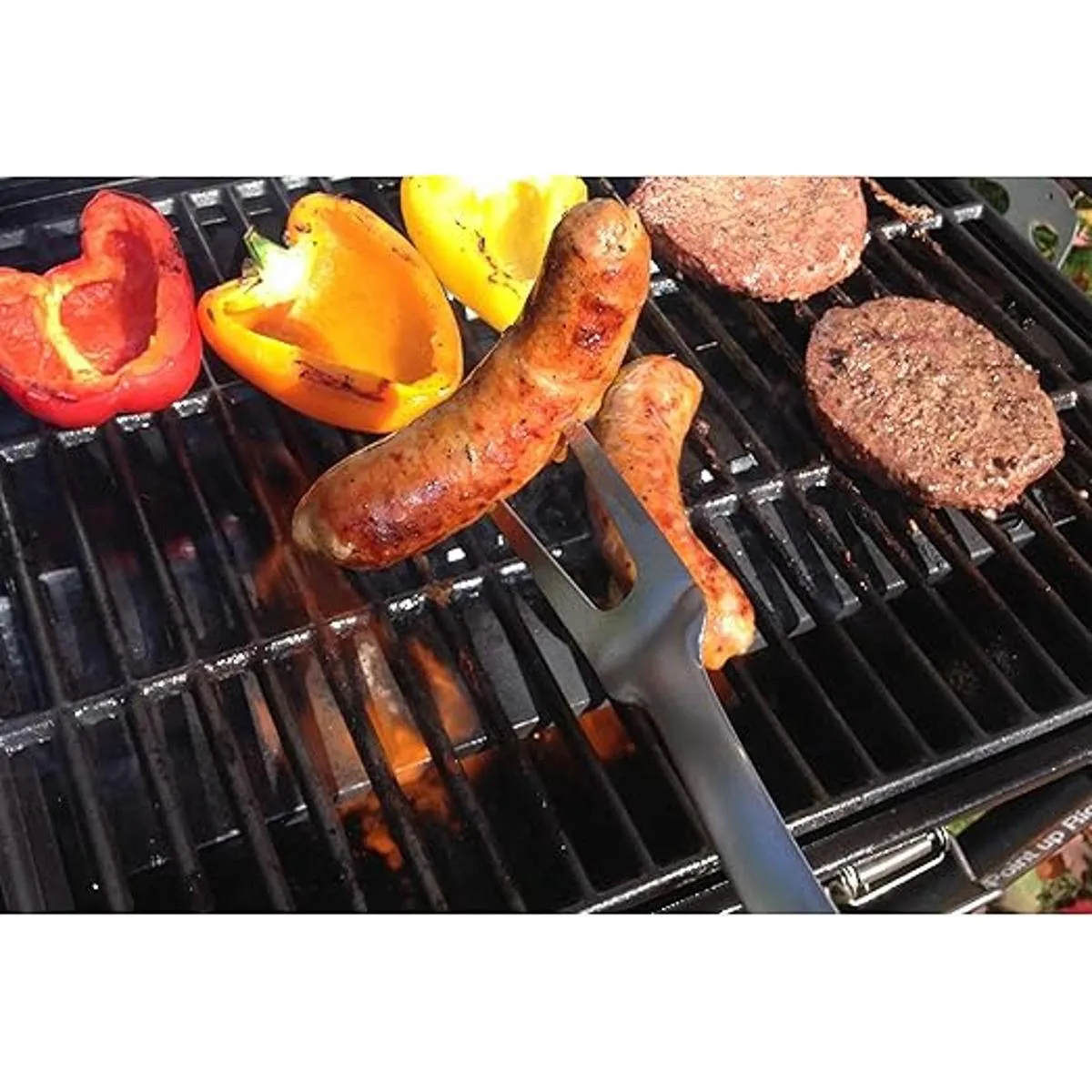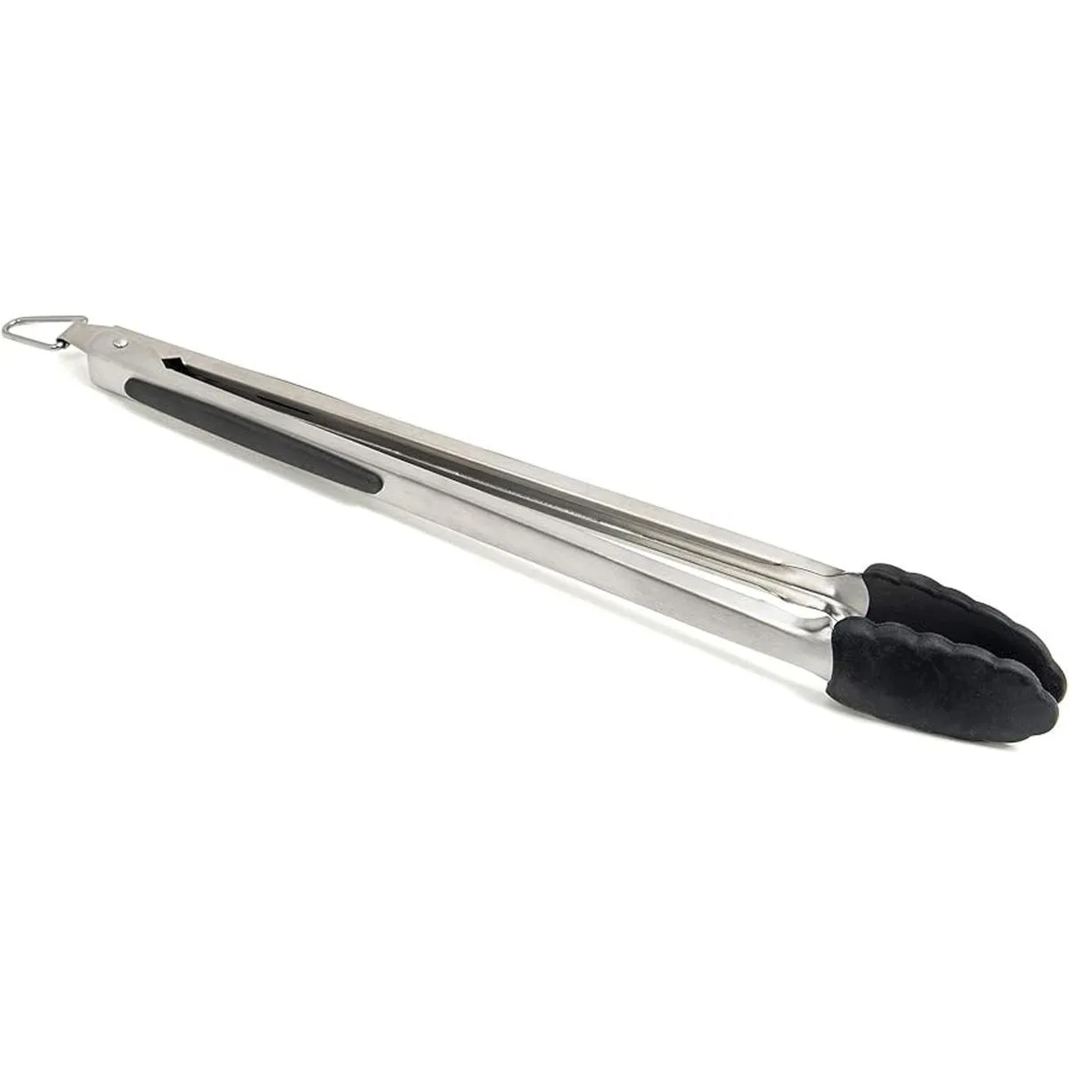 Longitud óptima para asar a la parrilla: el juego incluye pinzas para espátula y tenedor, construcción de acero inoxidable, empuñaduras de goma