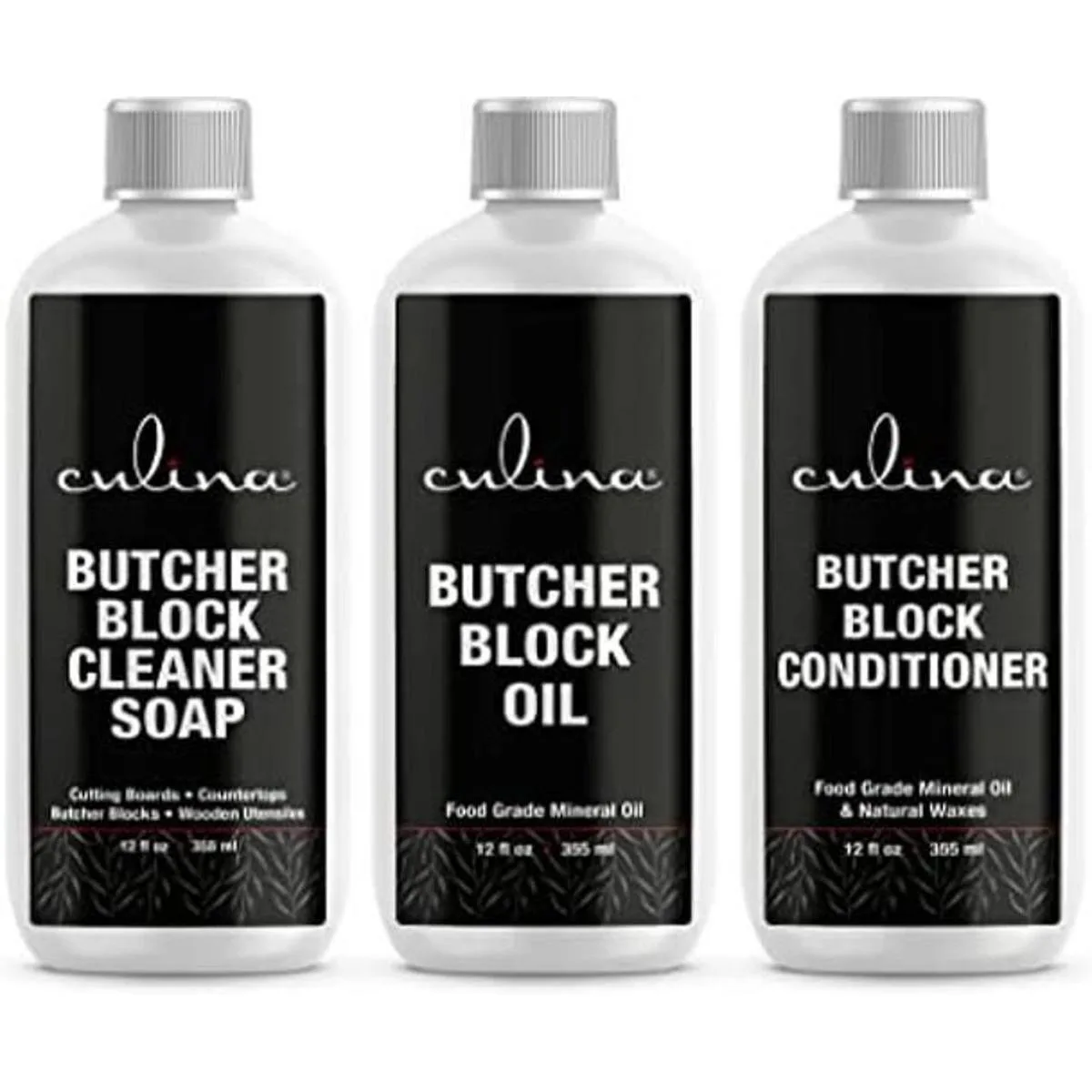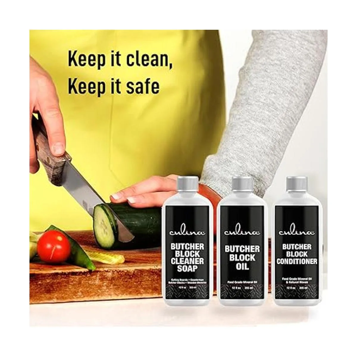 Culina Wood Premium Set de jabón y cera de grado alimenticio Aceite mineral jabón y cera acondicionador para tablas de cortar, encimeras y bloques de carnicero, seguro para alimentos y fabricado en los Estados Unidos
