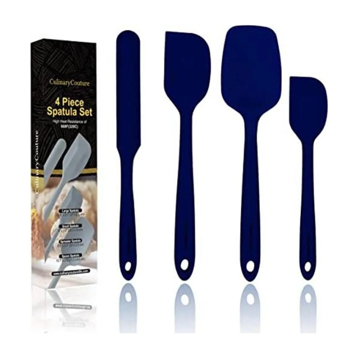Culinary Couture Juego de espátulas de silicona pequeñas, espátula de silicona resistente al calor para cocinar, juego de espátulas de goma pequeñas para utensilios de cocina antiadherentes, juego de espátulas para hornear pasteles con libro electrónico de recetas, juego de 4, azul