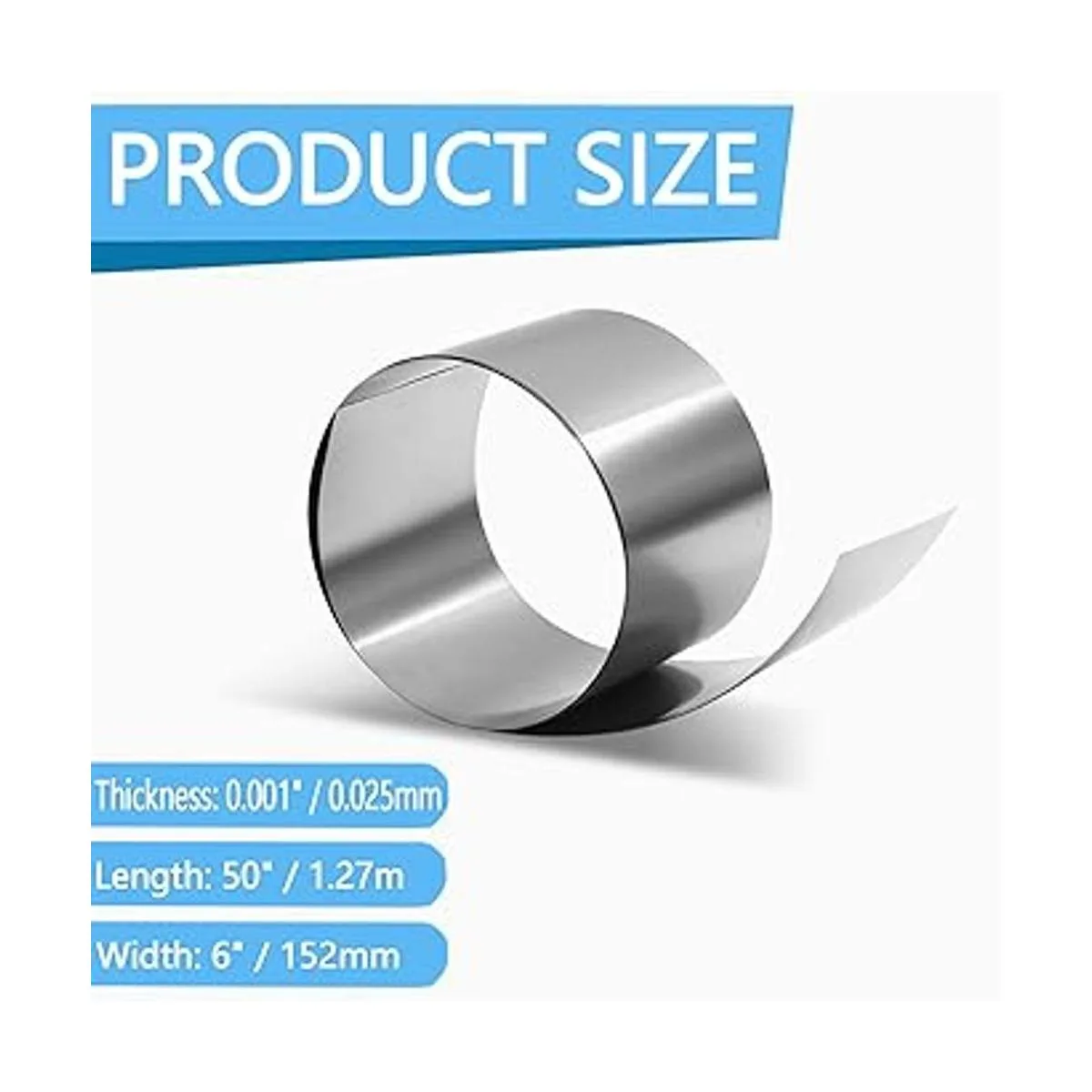 Cuñas de acero inoxidable, rollo de cuña de acero inoxidable 304, temperamento duro completo, 50 pulgadas de largo x 6 pulgadas de ancho x 0.001 pulgadas de grosor