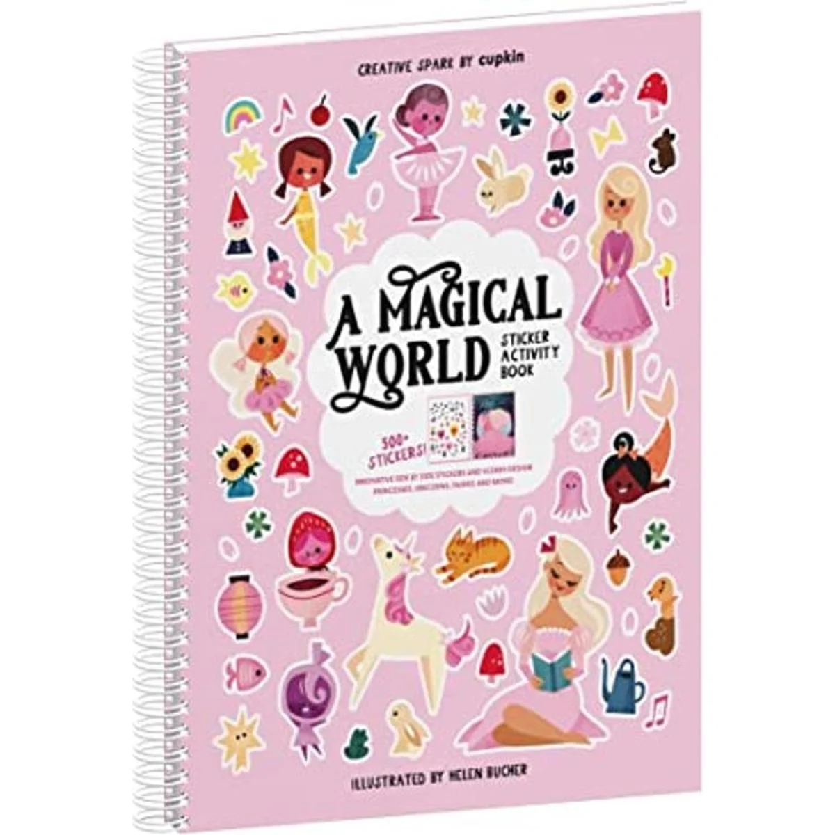 CUPKIN A Magical World Libro de actividades 2 en 1, innovador libro de calcomanías y para colorear lado a lado, para niñas, se coloca plano en la mesa o regazo, más de 500 calcomanías y 12 escenas