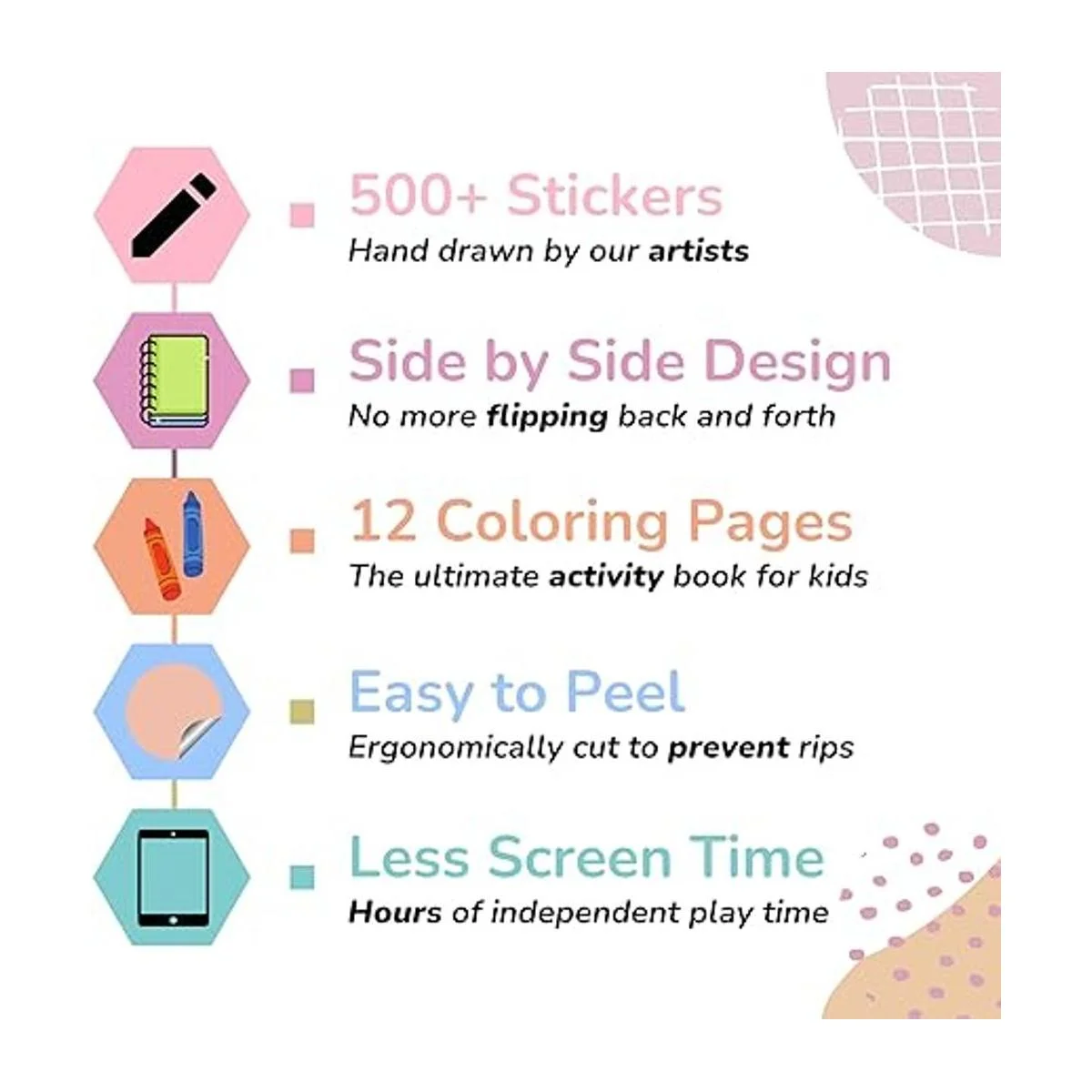 12 actividades de calcomanías con más de 500 calcomanías reutilizables y páginas para colorear para crear experiencias educativas de aprendizaje