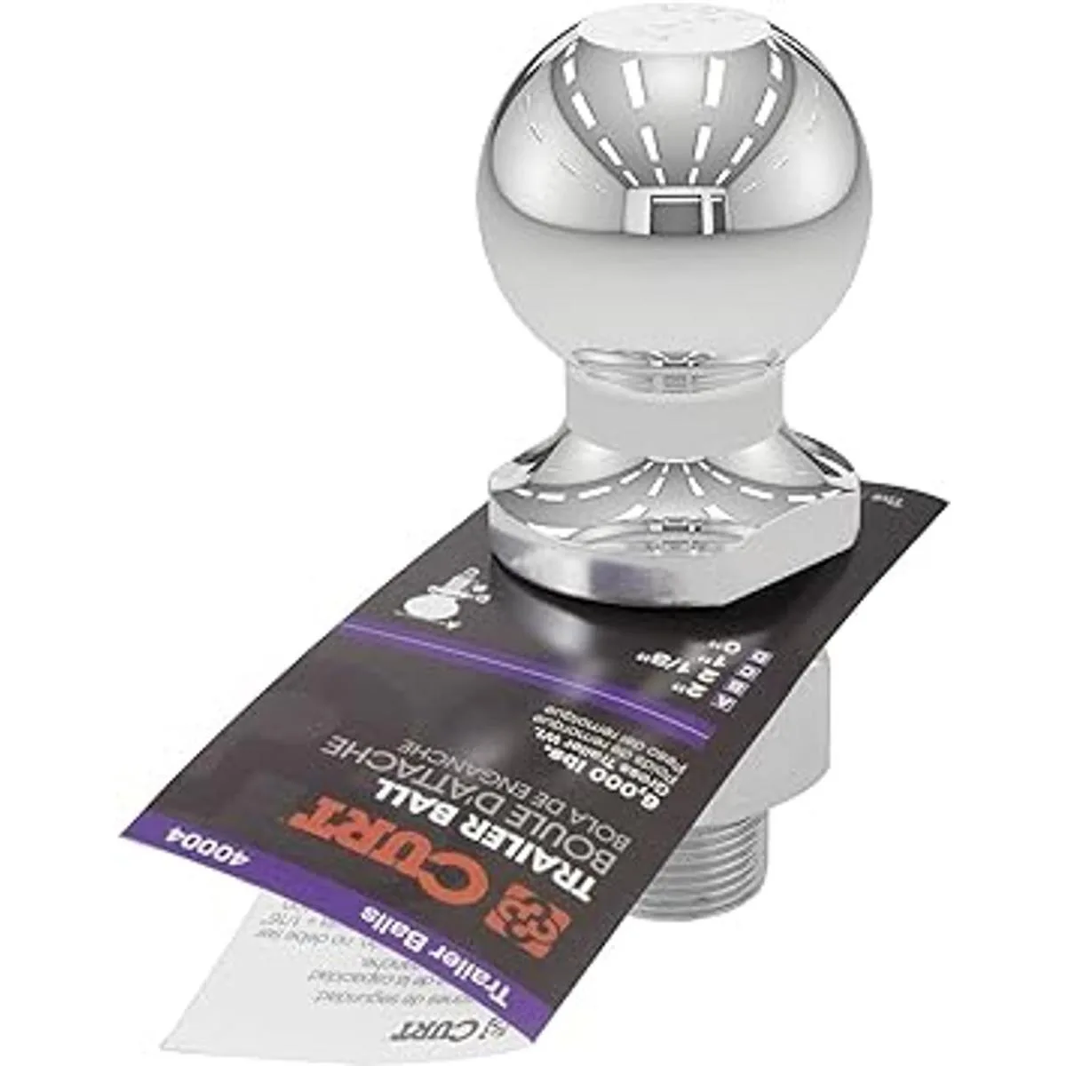 CURT 40004 Bola de enganche del remolque cromado, 6,000 lbs, diámetro de 2 pulgadas, vástago de 1 x 21 8 pulgadas