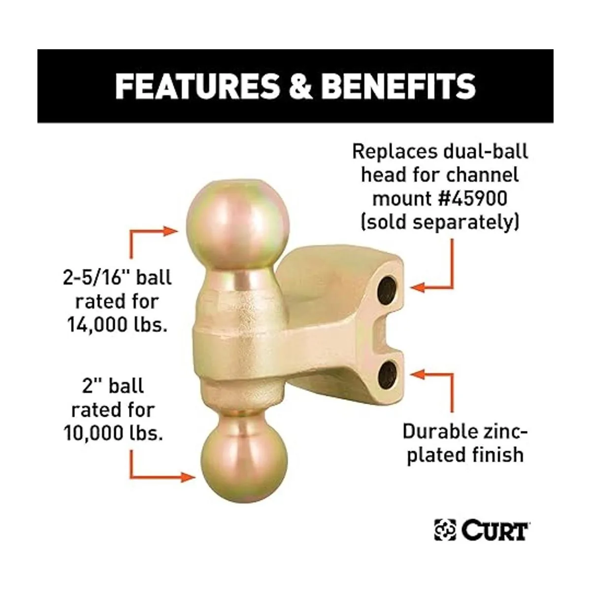CURT 45912 Bola doble de repuesto para enganche de remolque ajustable 45900 o 45926, color dorado