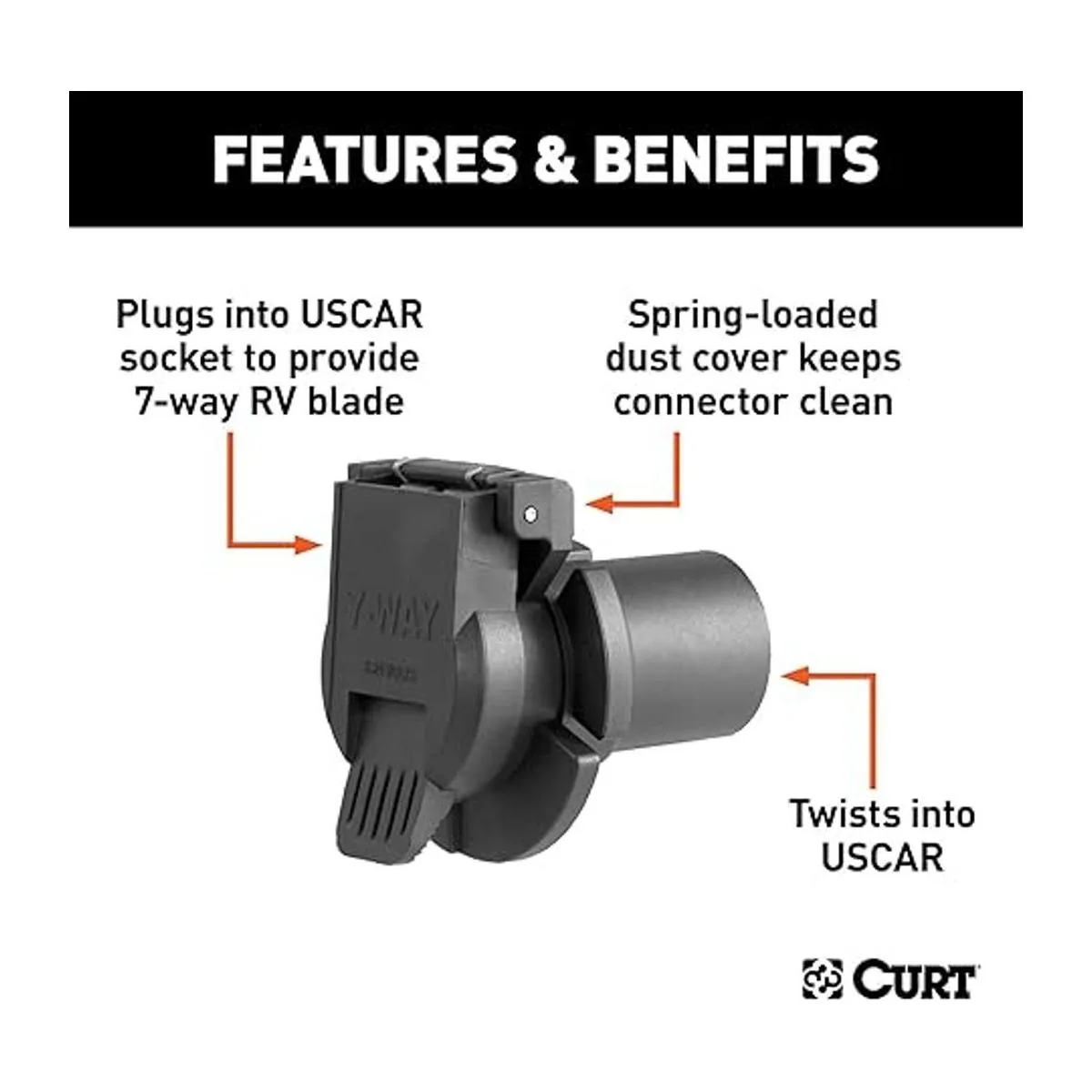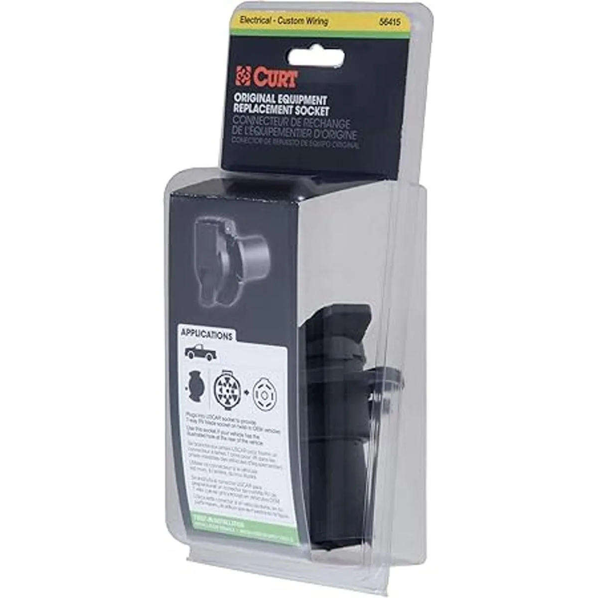CURT 56415 Conector de repuesto de 7 pines con bloqueo giratorio para el lado del vehículo, paquete de remolque de fábrica y enchufe USCAR requerido, color negro