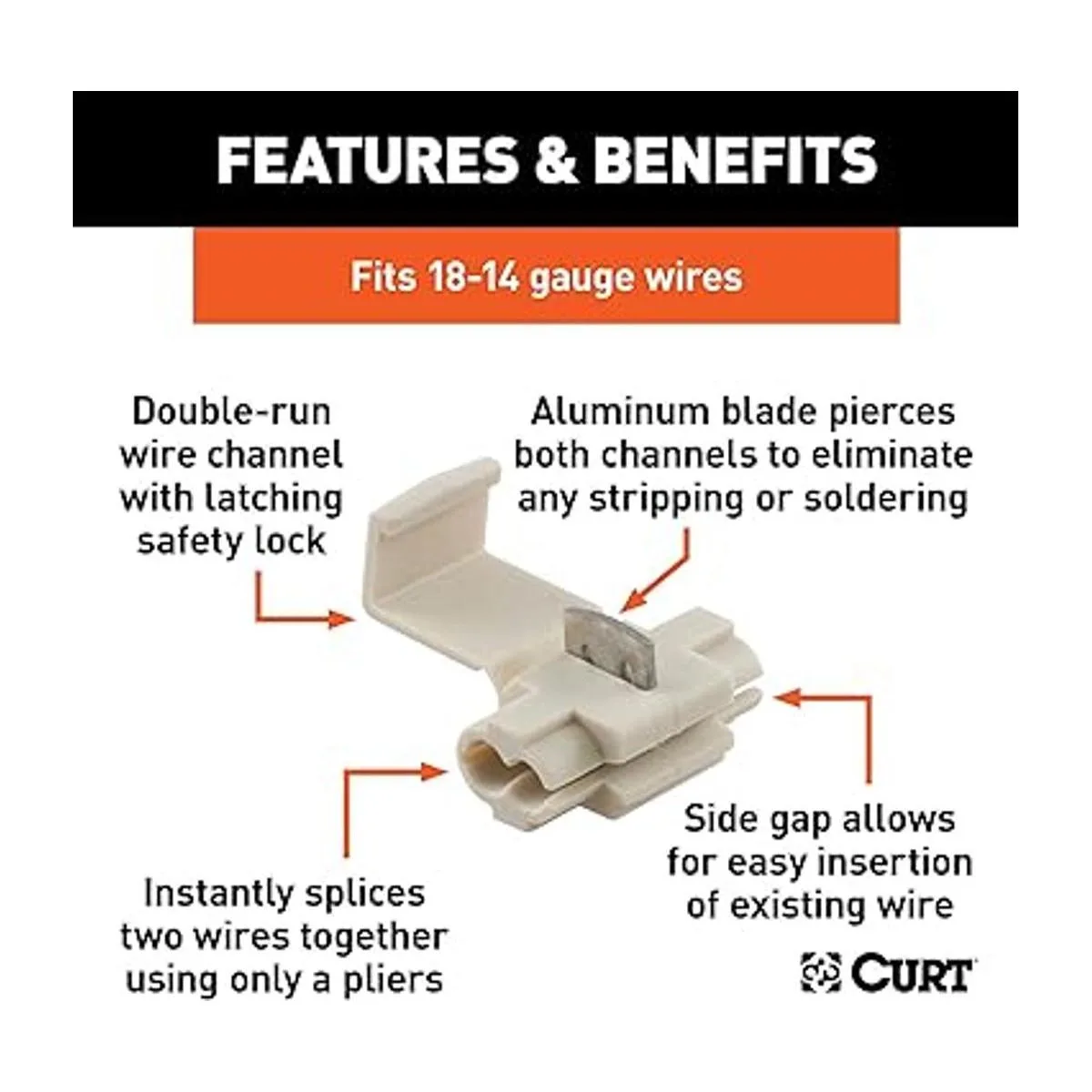 CURT 59906 1814 Conectores de alambre con cierre a presión escocés blanco, 100 unidades