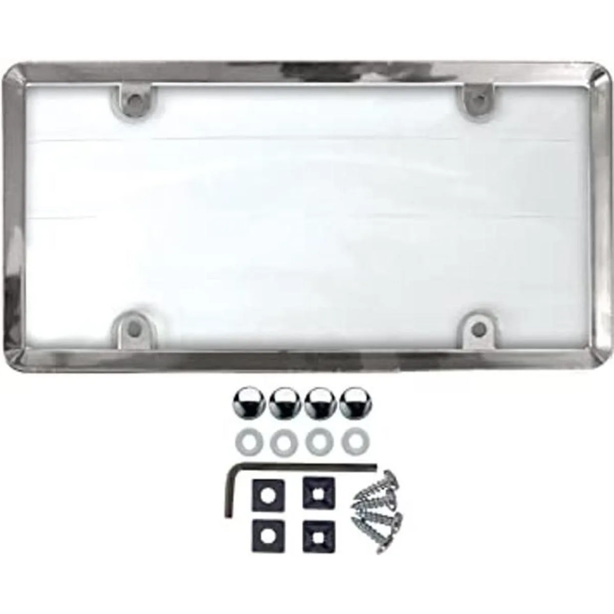 Custom Accessories 90085 marco para placa de vehículo con cubierta transparente con ABS de cromo y sujetadores antirrobo.
