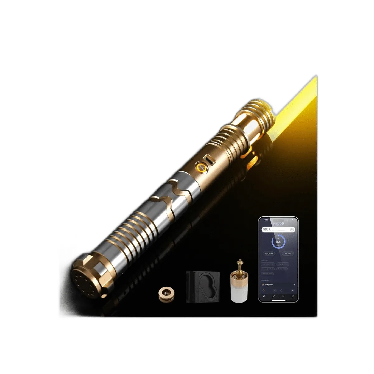 CUSTOM SABER Sable de luz RGBX de columpio suave que cambia de color infinito, control de movimiento, 12 fuentes de sonido, sable de luz, compatible con duelo pesado real, juguete de espada LED de aluminio para adultos, fiesta, color dorado