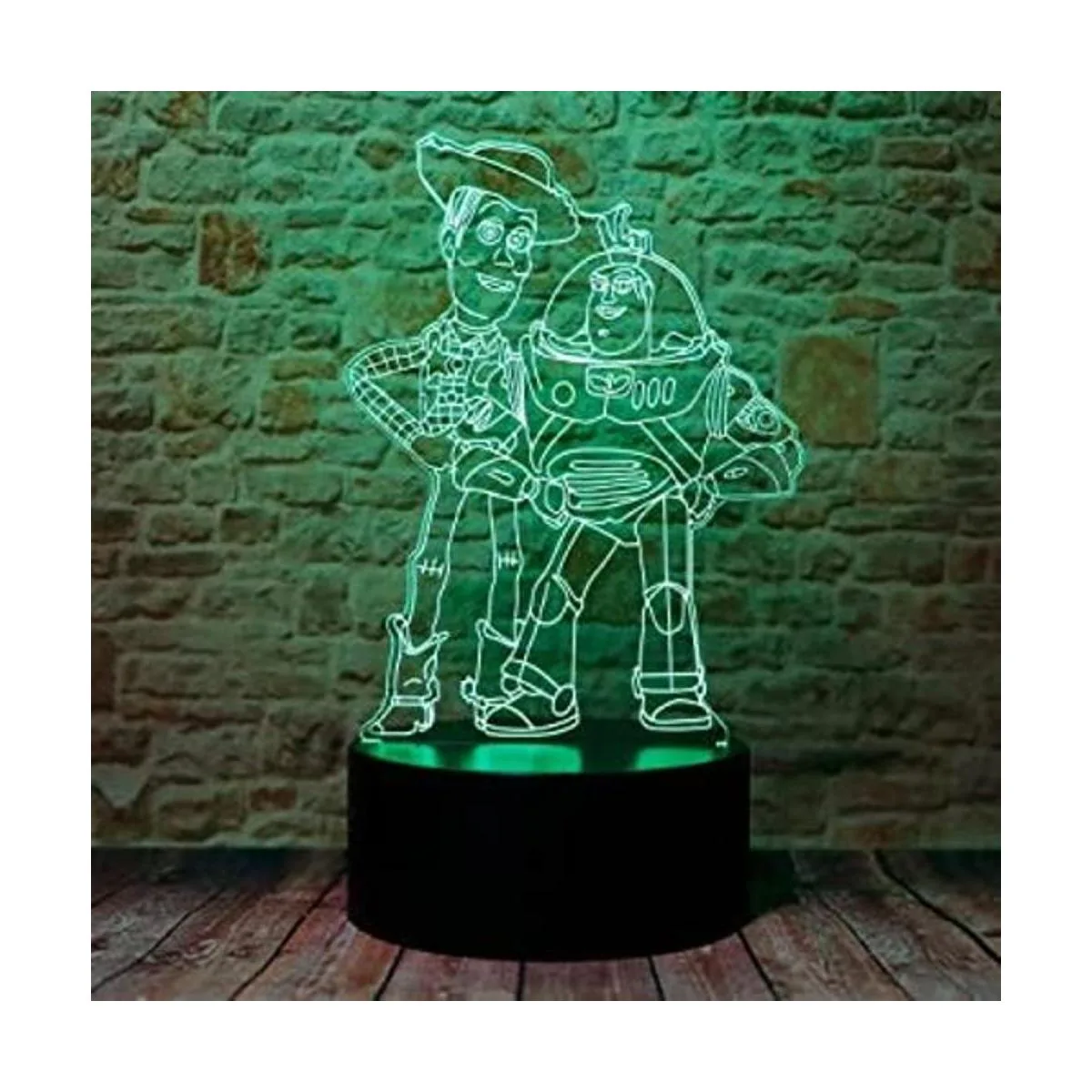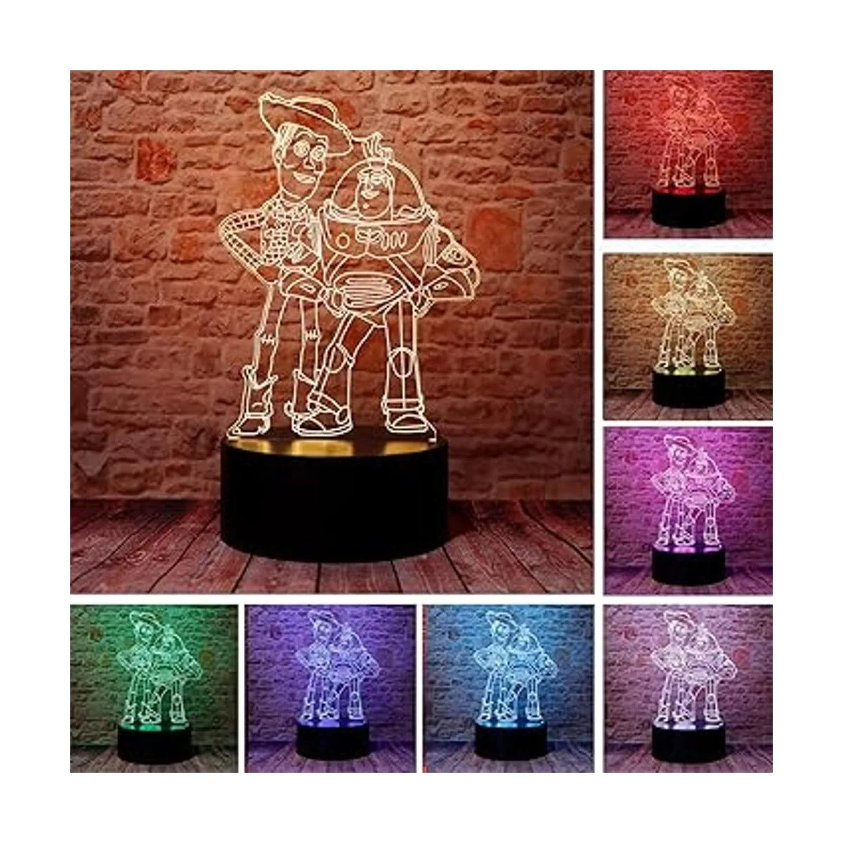 Cute Toy Story Sheriff Woody and Buzz Lightyear personaje de anime 3D ilusión óptica LED decoración de dormitorio, lámpara de mesa para dormir con control remoto, 7 colores, luz nocturna visual acrílica, regalos de cumpleaños y Navidad para niños
