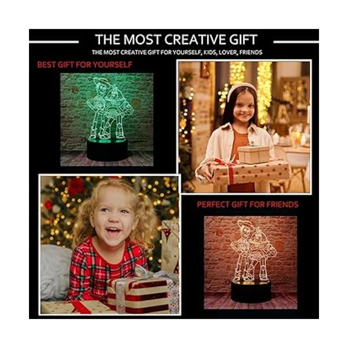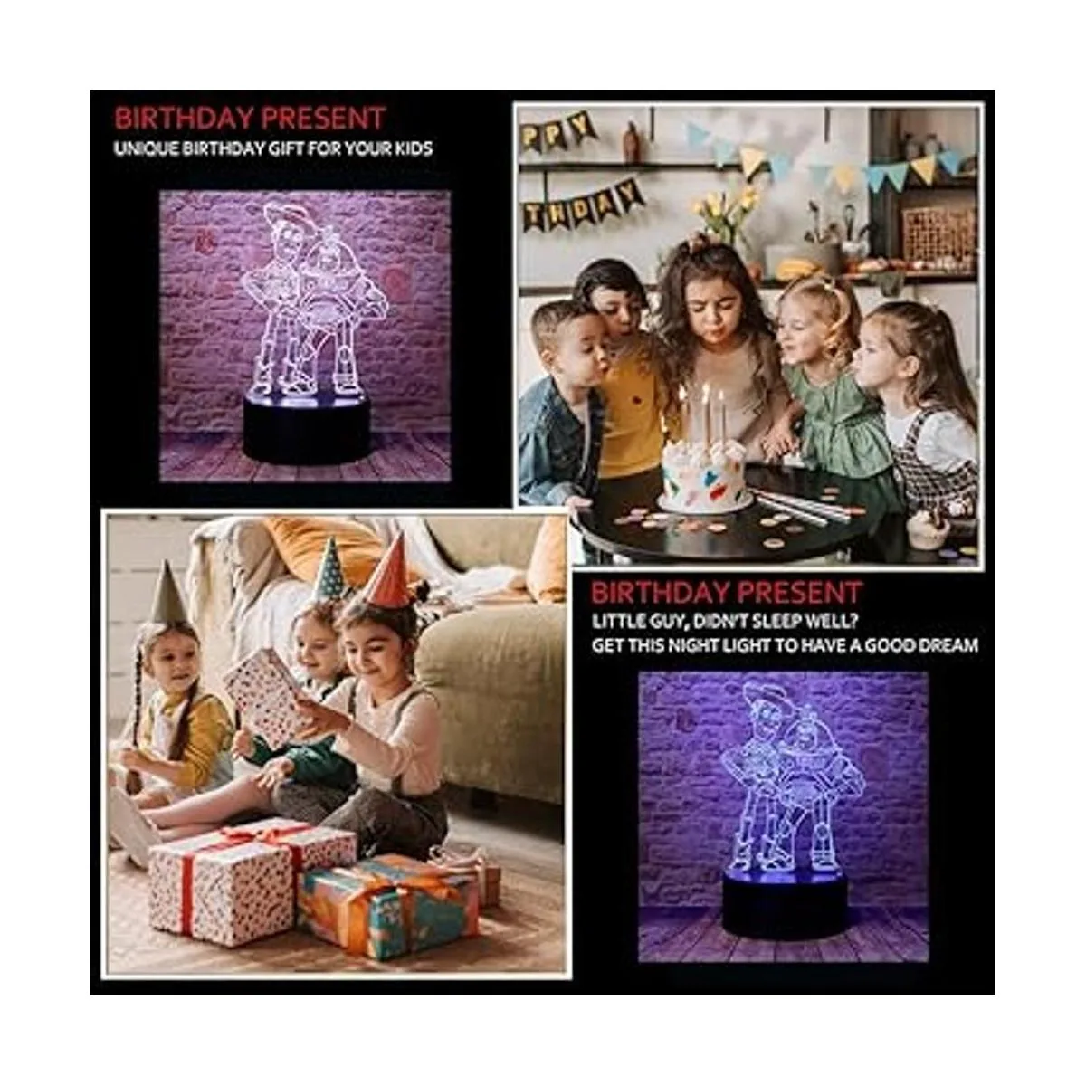 La luz nocturna 3D sería perfecta para fiestas, regalos ideales para niños, niñas, niños, amigos y familiares. Juguete para niños para cumpleaños, Navidad, Acción de Gracias, decoración del hogar, decoración de dormitorio, decoración de habitación de niños, decoración de habitación de bebé.