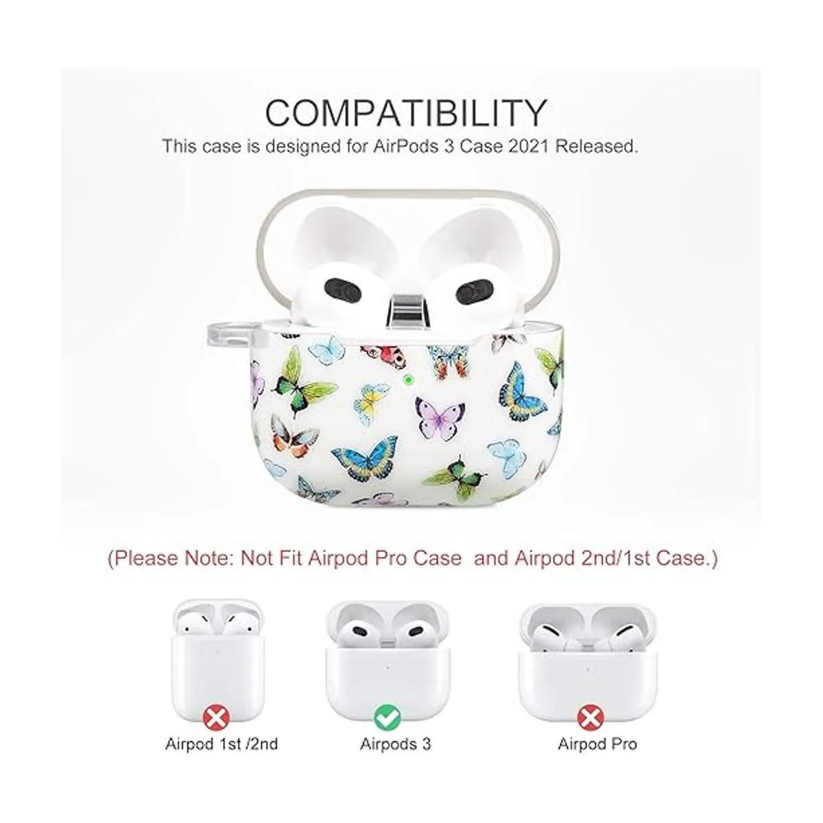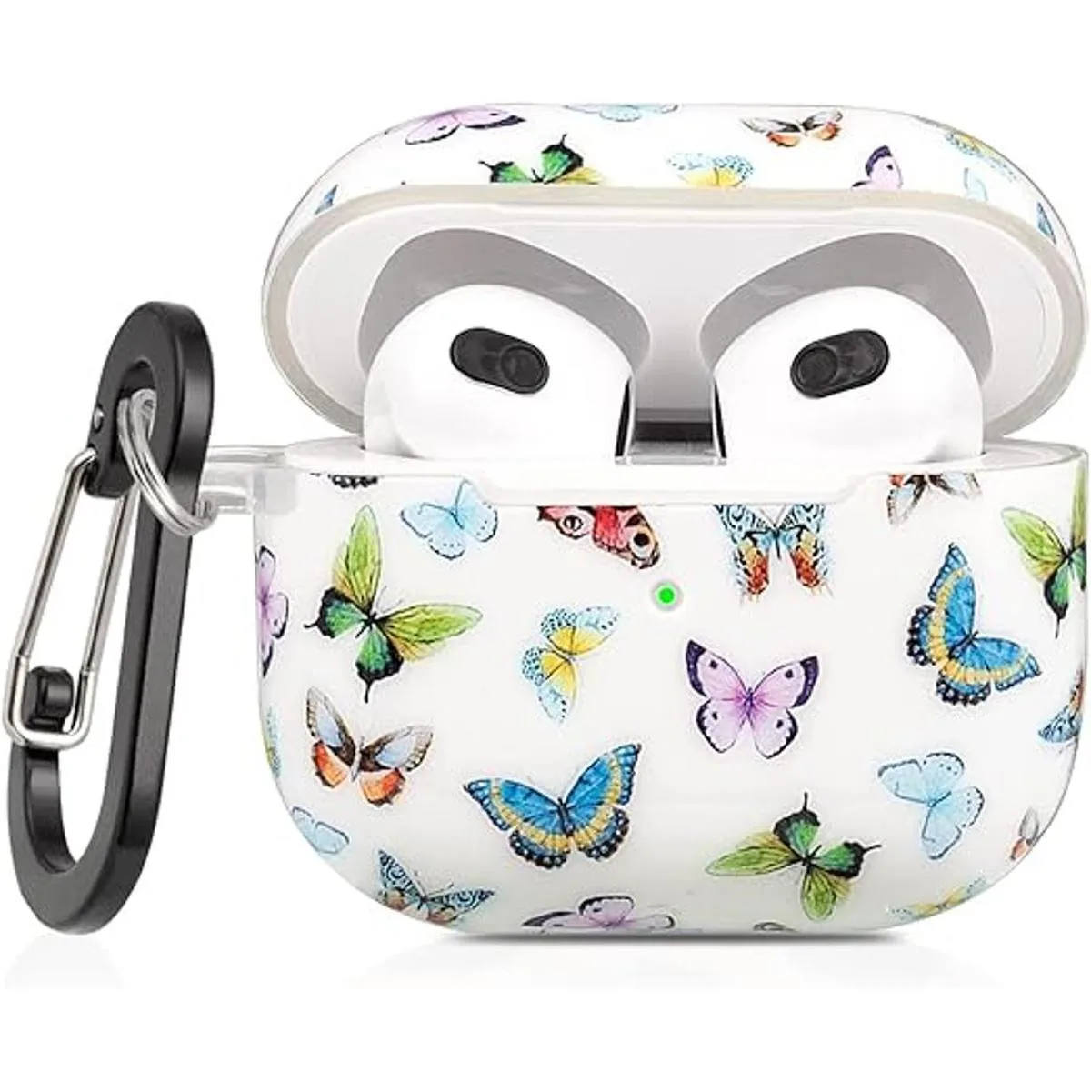 CutebriCase Funda protectora para AirPods de 3 generación 2021 para mujeres y niñas, funda rígida protectora para AirPods 3 con llavero compatible con carga inalámbrica, mariposa de colores
