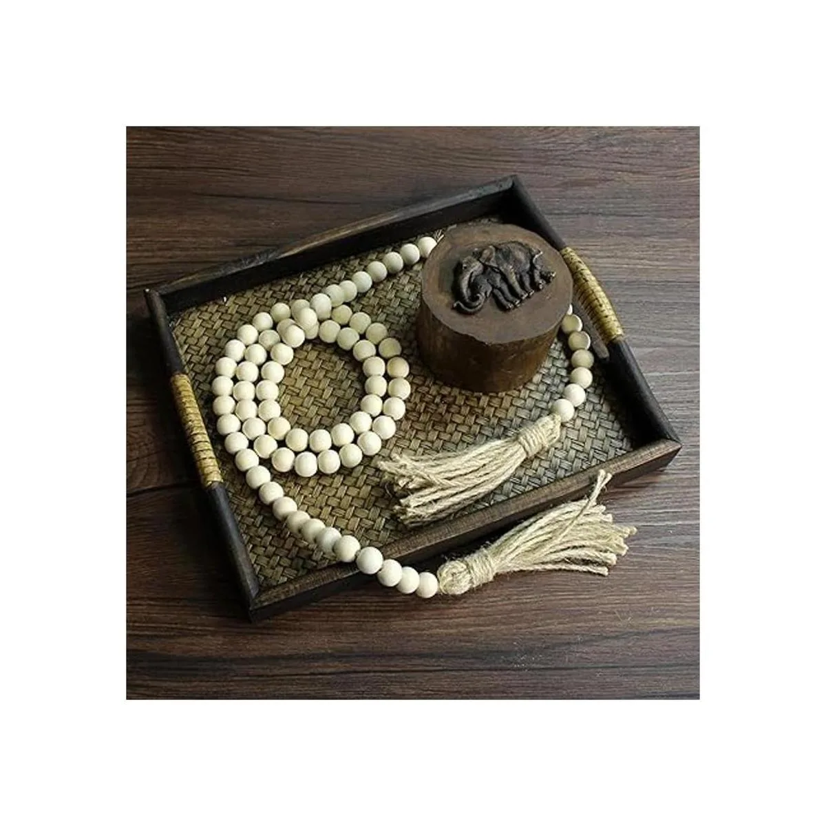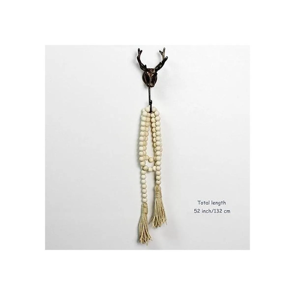 CVHOMEDECO. Guirnalda de cuentas de madera con borlas, cadena de cuentas de oración de madera rústica para colgar en la pared para decoración de festivales del hogar. Natural