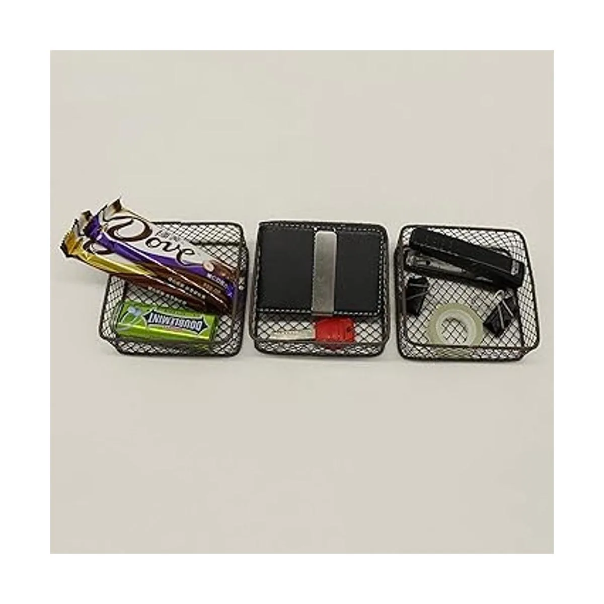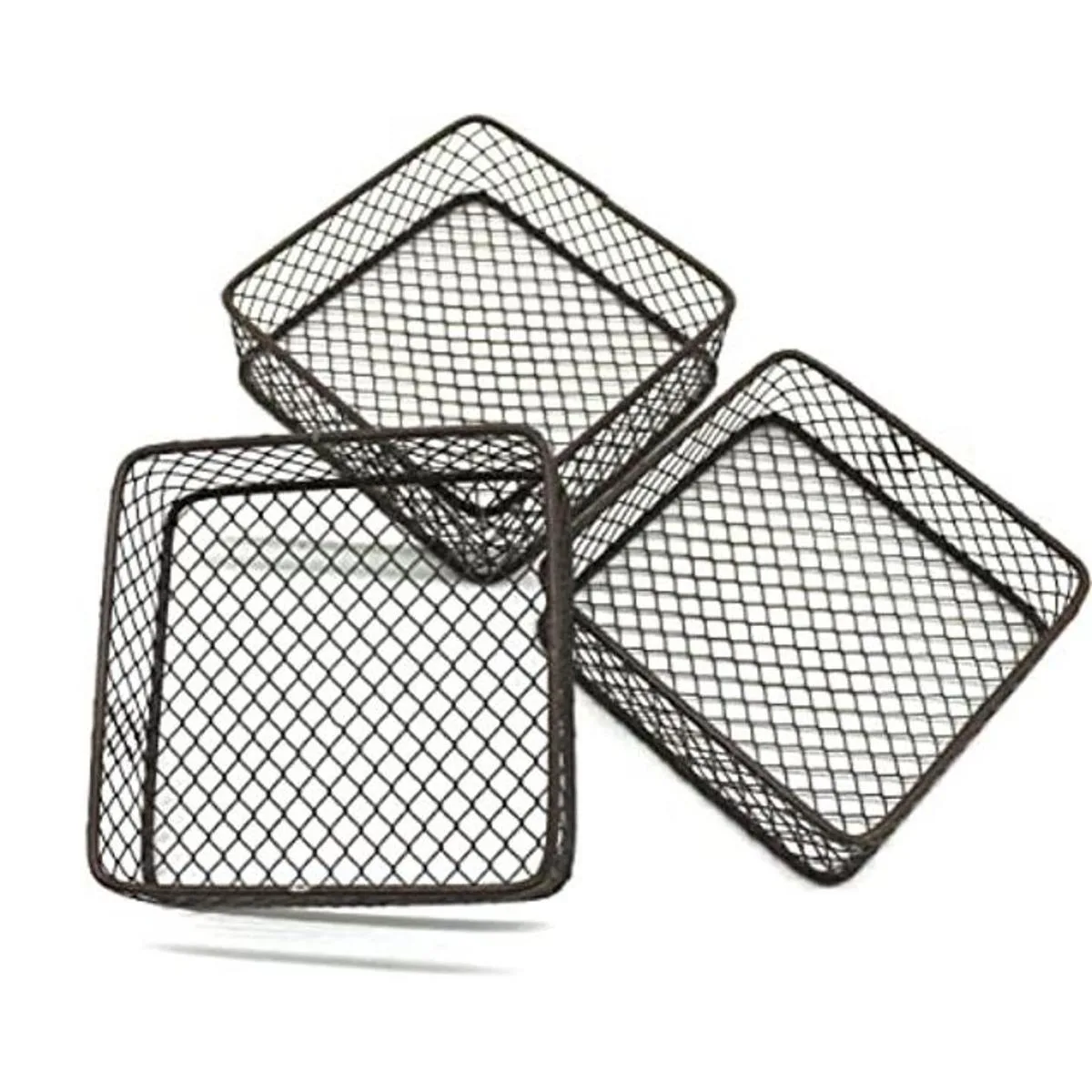 CVHOMEDECO. Mini cestas de almacenamiento de alambre de metal, escritorios y estantes, contenedor organizador de baratijas, ideal para almacenar especias, regalos o regalar. Juego de 3. cuadrado oxidado
