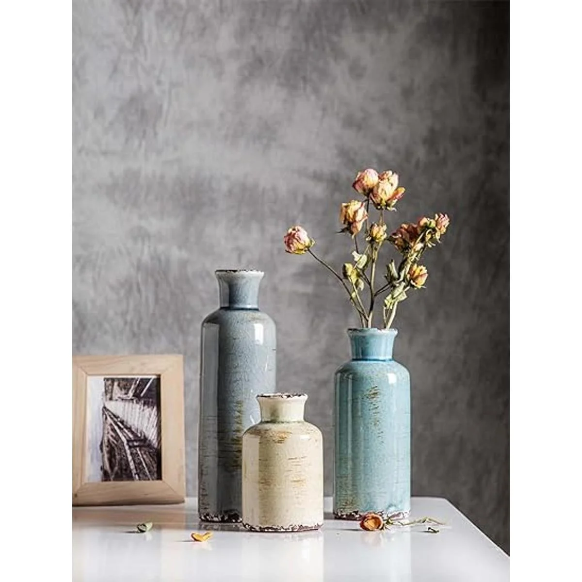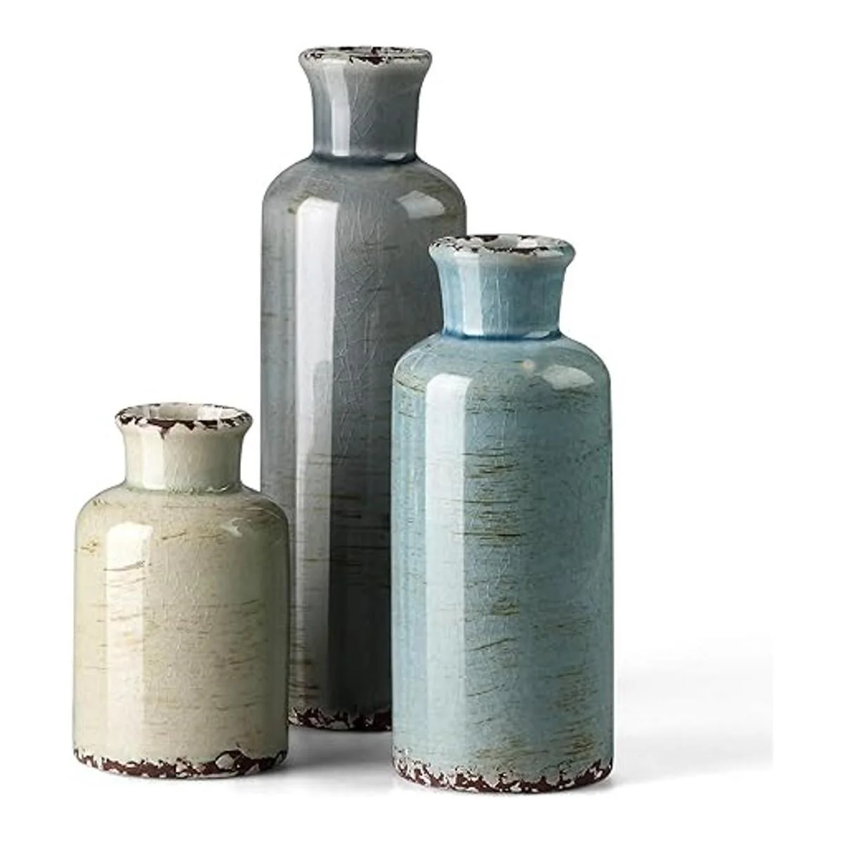 Juego de cerámica decorativo multifuncional tamaño 3 pulgadas de largo x 3 pulgadas de ancho x 10 pulgadas de alto; 3 pulgadas de largo x 3 pulgadas de ancho x 7.5 pulgadas de alto; 3 pulgadas de largo x 3 pulgadas de ancho x 5 pulgadas de alto; este jarrón tiene otros cuatro colores, y siempre hay uno que se adapte a tus necesidades de decoración.