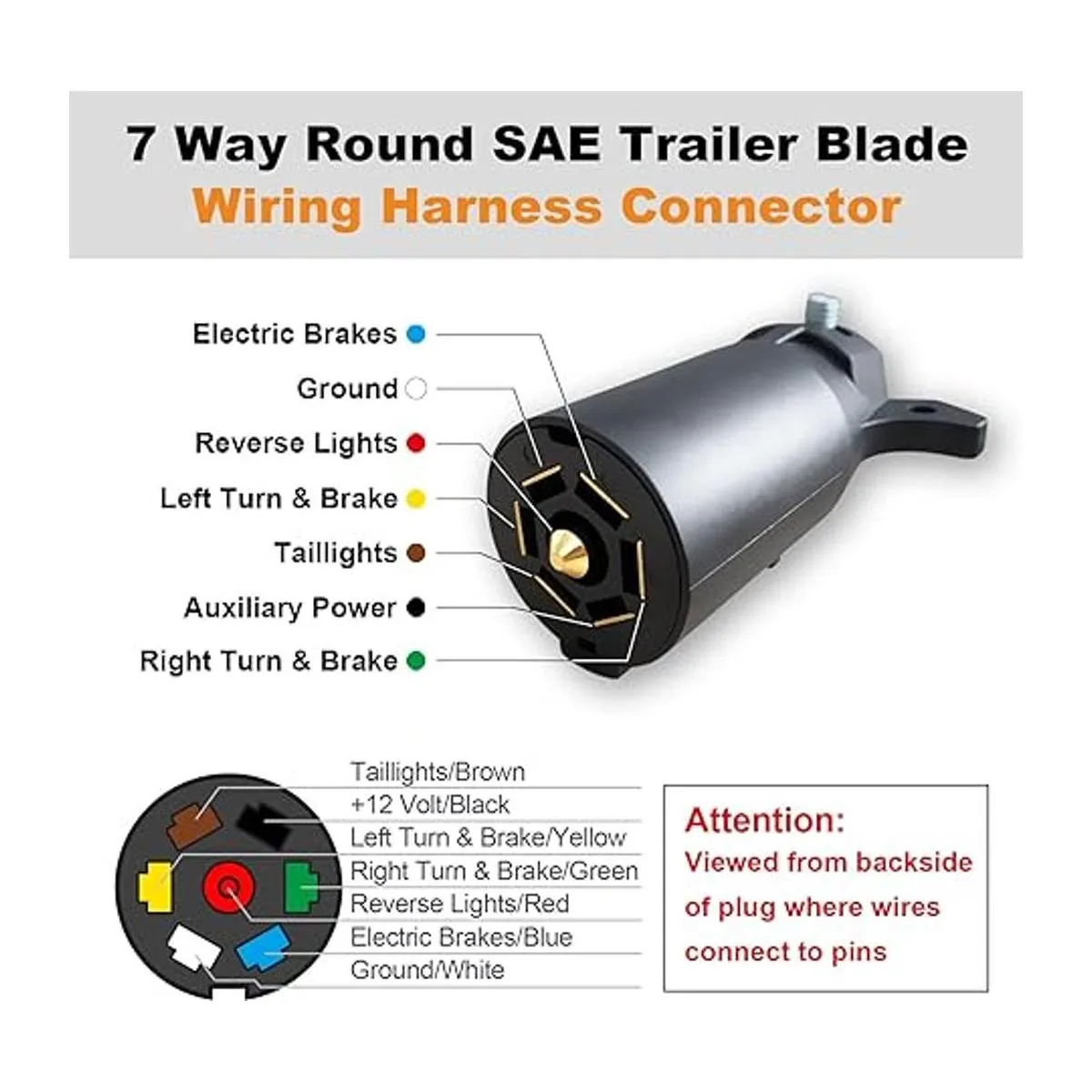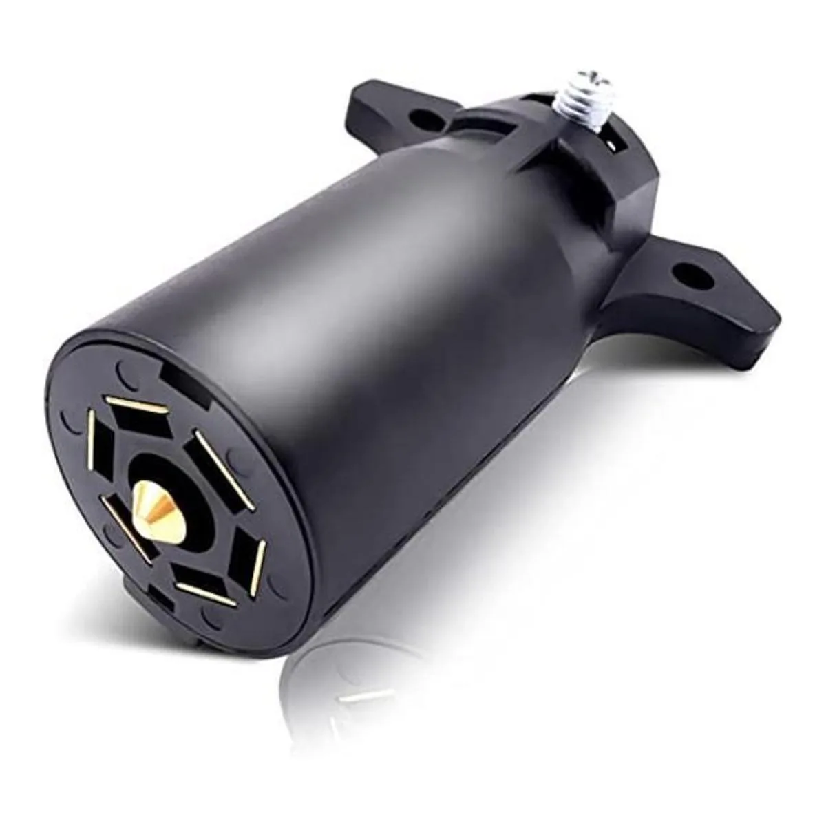 Conexión fiable: este adaptador de enchufe de remolque de 7 pines viene listo para empalmar en el cableado de tu remolque existente. Este enchufe de remolque de 7 pines se puede utilizar para conectar las luces traseras, luz de marcha atrás, intermitentes, luz de freno, frenos de remolque y alimentación auxiliar.
