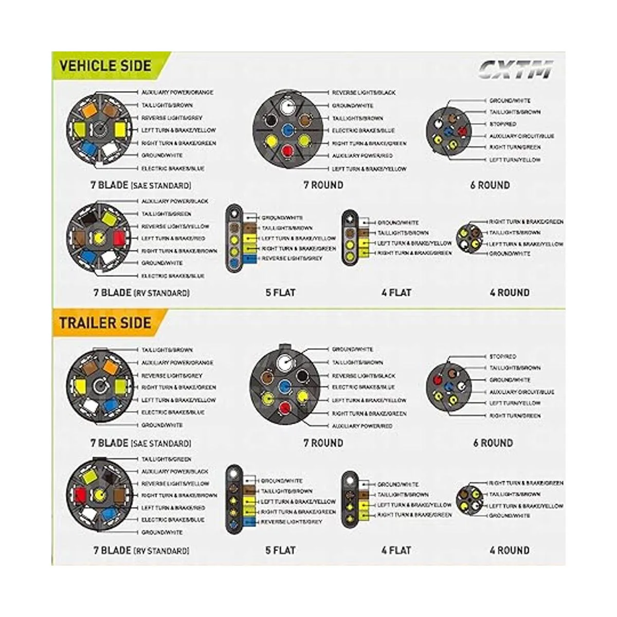 Uso versátil: enchufe de remolque de 7 vías estándar de la industria CXTM comúnmente utilizado en remolques de caravana RV para remolcar remolques de viaje RV, proporciona un gran reemplazo e intercambiable con cualquier conector RV de 7 vías del lado del remolque.