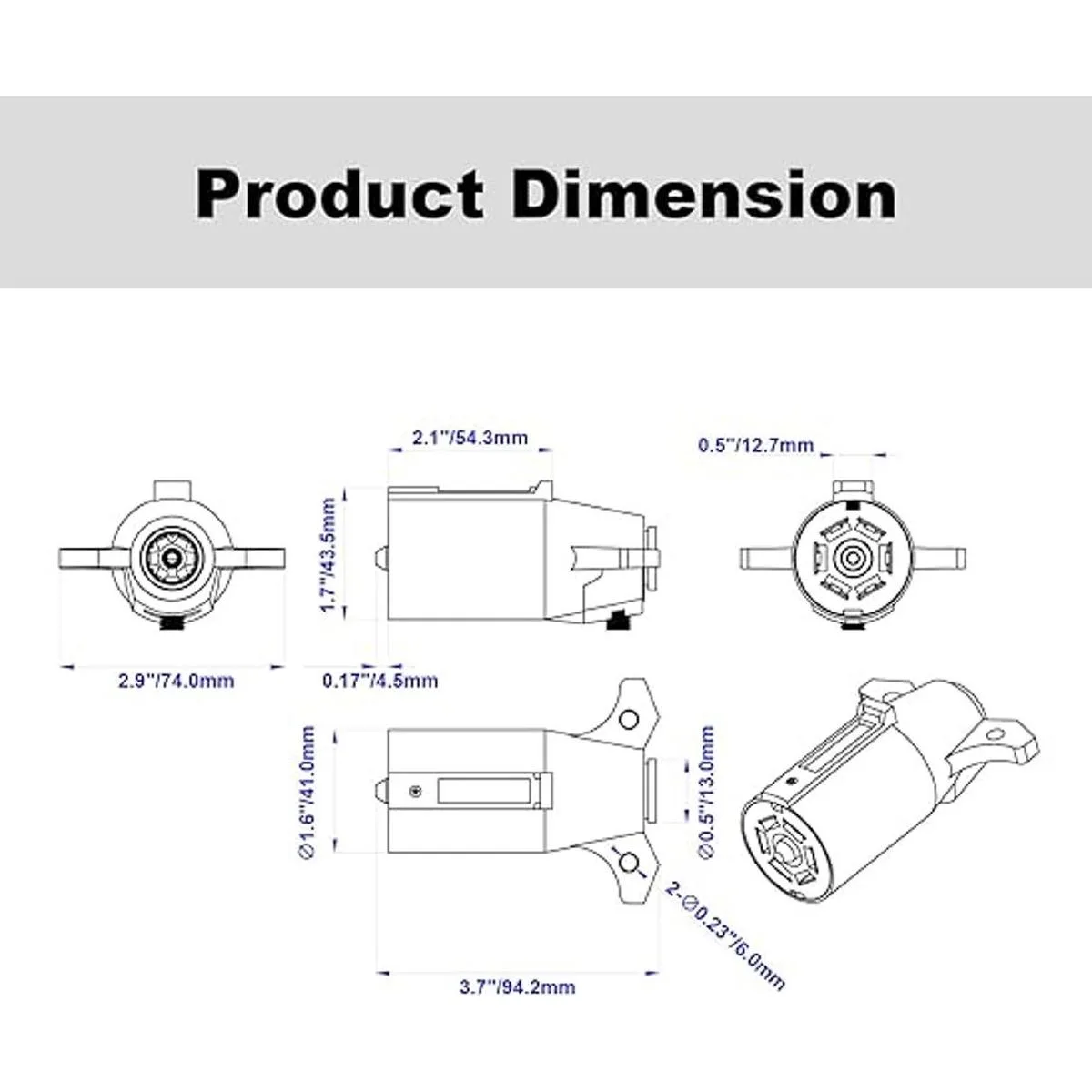 Construcción de larga duración: el cuerpo de nailon duradero y los terminales de cobre, proporcionan una excelente resistencia al agua/alta temperatura/desgaste/corrosión, prolongan la vida útil del enchufe de remolque de 7 vías.