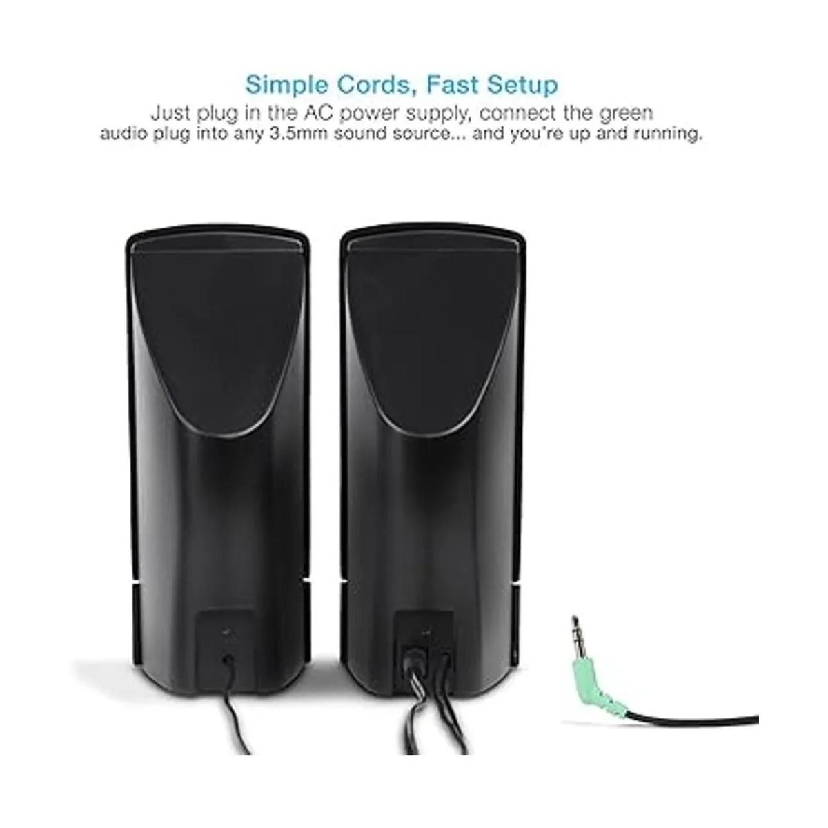 Ideal para la oficina o cualquier espacio de trabajo: los altavoces de PC 2.0 ahorran espacio encajan en cualquier escritorio estrecho. Ideal para cualquier experiencia de escucha multimedia, música, juegos o voz