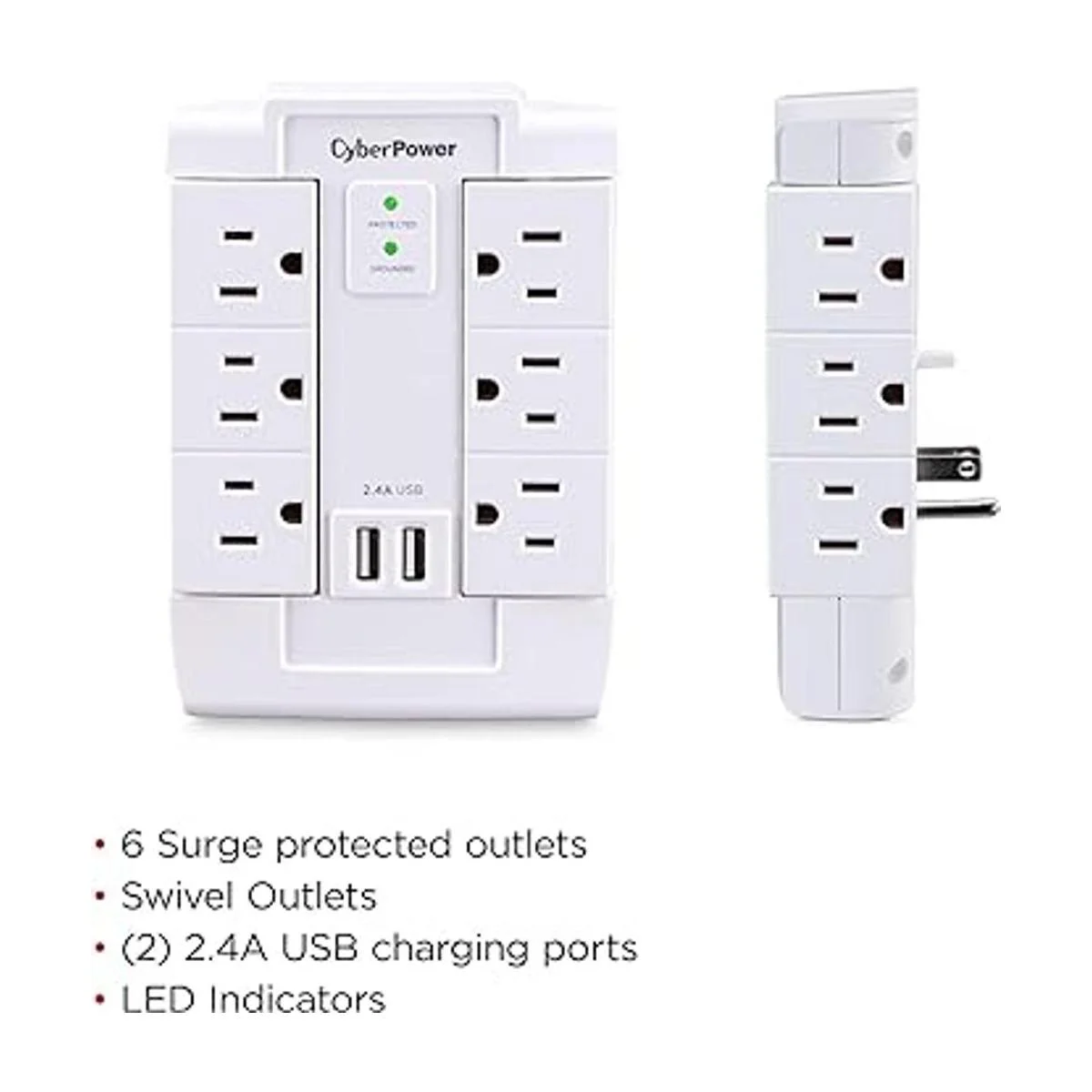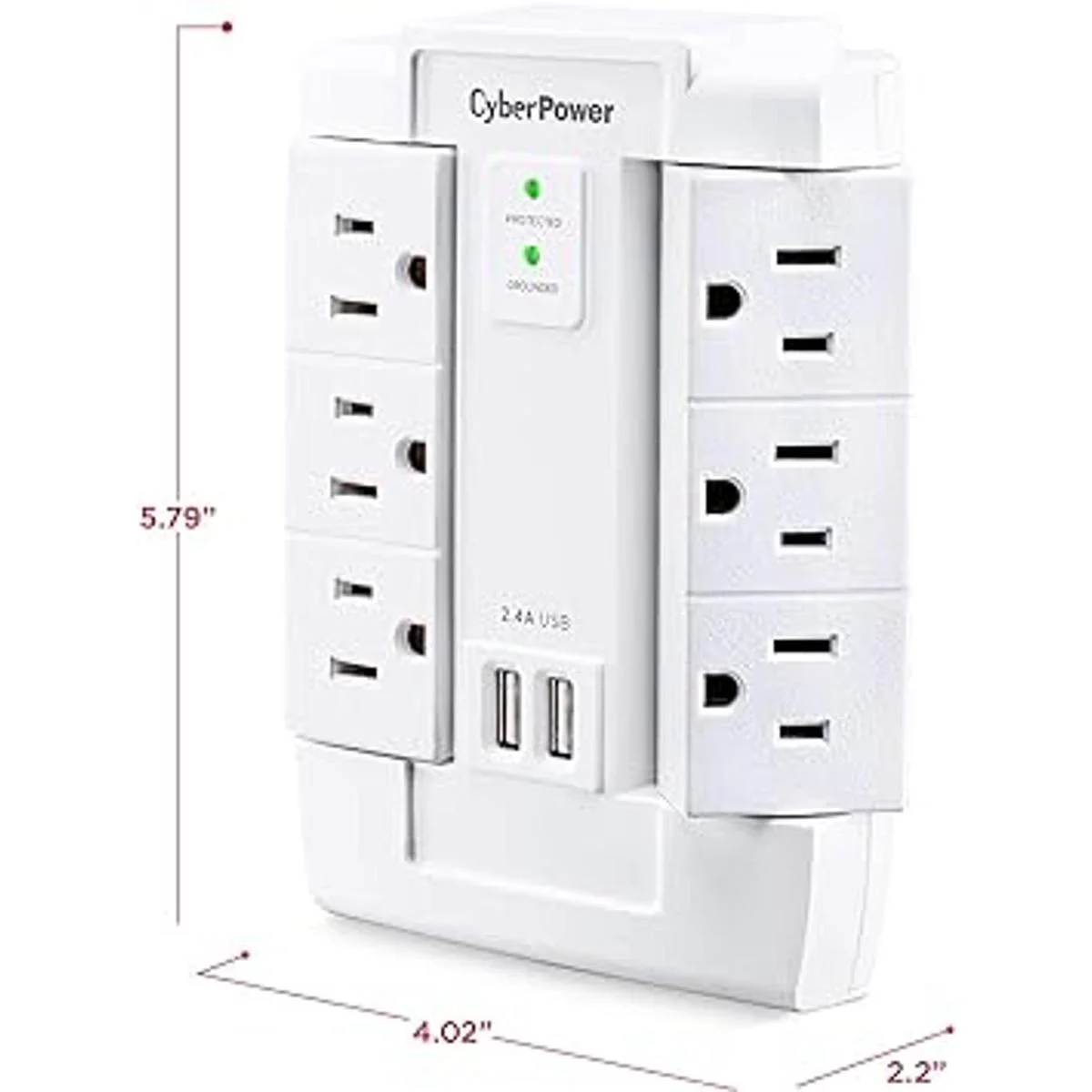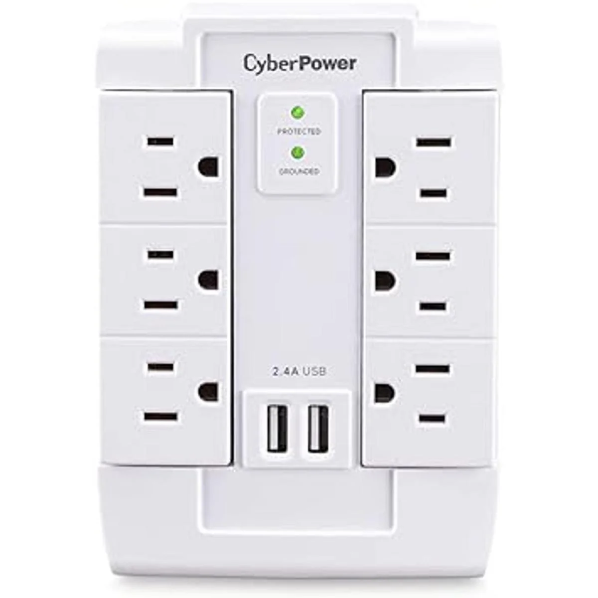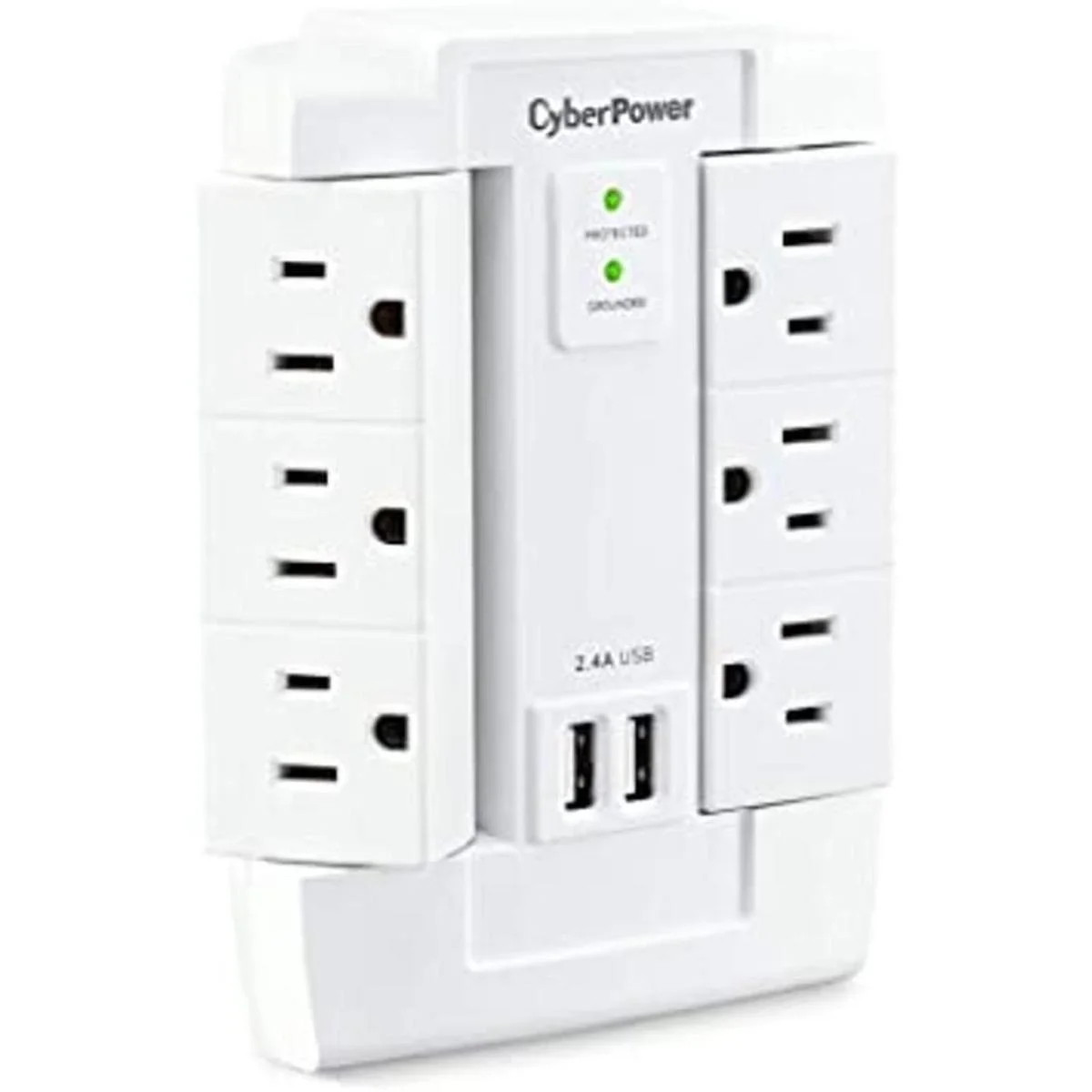 CyberPower CSP600WSU Protector de sobretensiones 6 CA con 2 puertos de carga USB 2,1 A