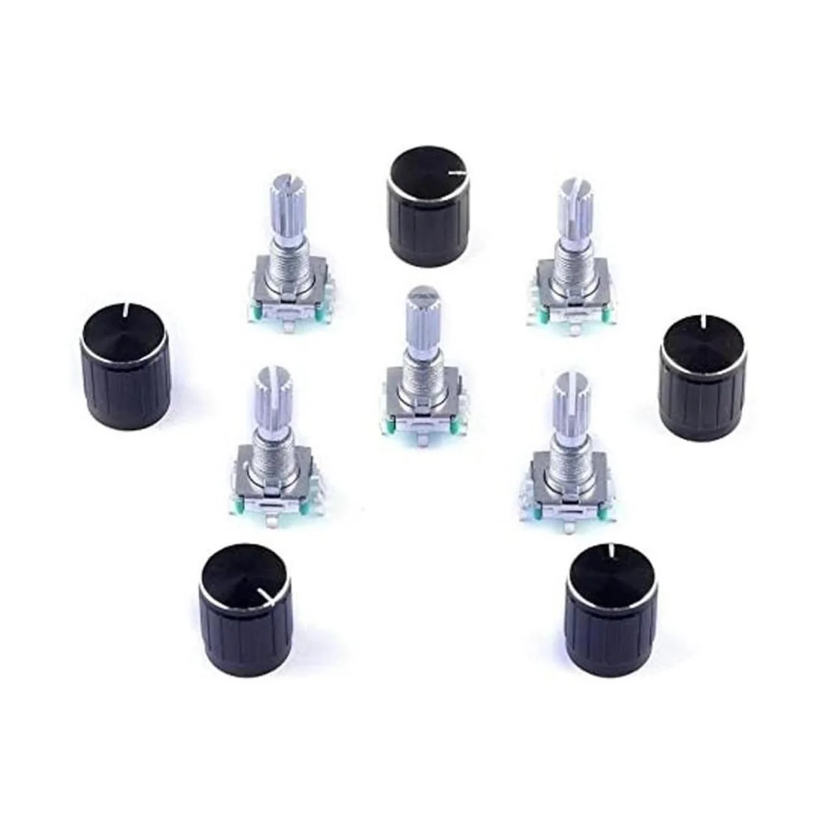 cylewet 5pcs rotatorio de 360 grados Codificador código interruptor digital Potenciómetro con botón de 5 pines y perilla Cap para Arduino paquete de 5 cyt1100