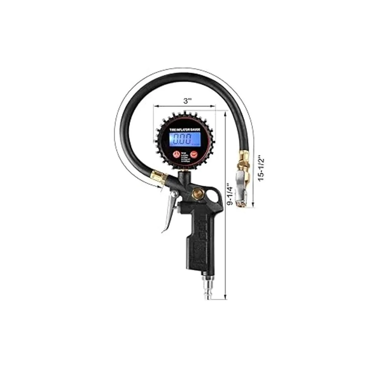 Lo que puedes obtener: este medidor digital de inflador de neumáticos incluye inflador y desinflador de neumáticos de aluminio, 4 unidades de medición de presión, medidor de aire digital, presión máxima de 13 pulgadas de largo de hasta 250 PSI, portabrocas recto de latón y accesorios NPT macho de 1/4 pulgadas. Función 3 en 1 con prueba de presión de neumáticos, desinflado e inflado de neumáticos con bomba de aire o compresor no incluido