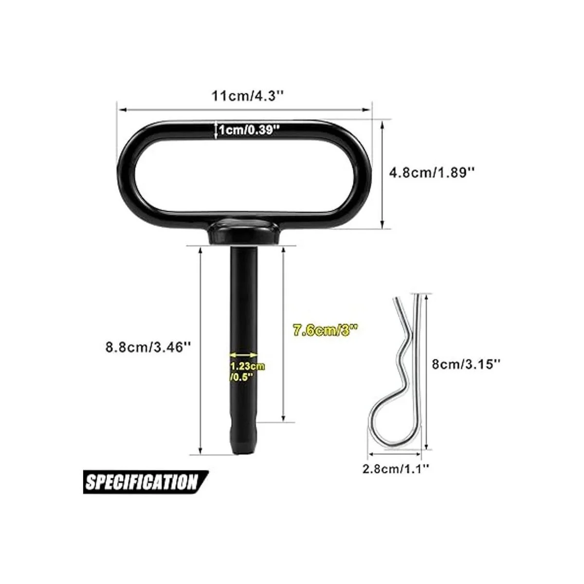 Pasador de enganche duradero: el pasador de enganche CZC Auto está hecho de acero de alta resistencia para resistencia al desgaste y al impacto. Nuestro pasador de tractor está blindado con un revestimiento de polvo duradero para evitar el polvo y la corrosión. Tamaño: 0.5 in de diámetro x 3.0 in de longitud utilizable
