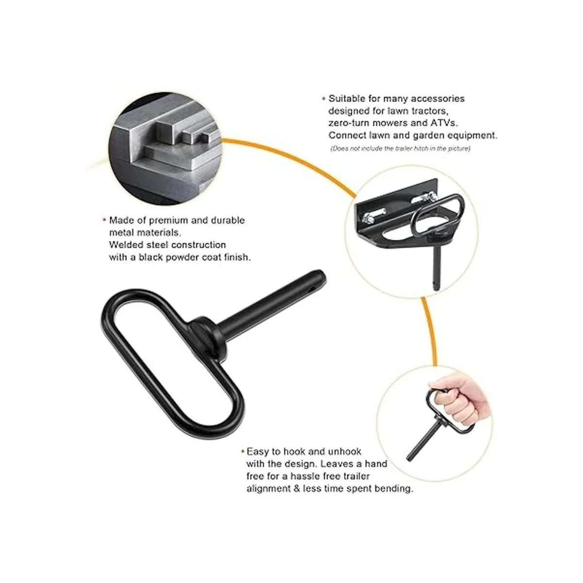 CZC AUTO Pasador de enganche para cortacésped de 12 x 3 pulgadas, pin de puerta de remolque para un simple gancho de una mano encendido y apagado Enganche de forma segura el césped y remolque detrás del accesorio, color negro