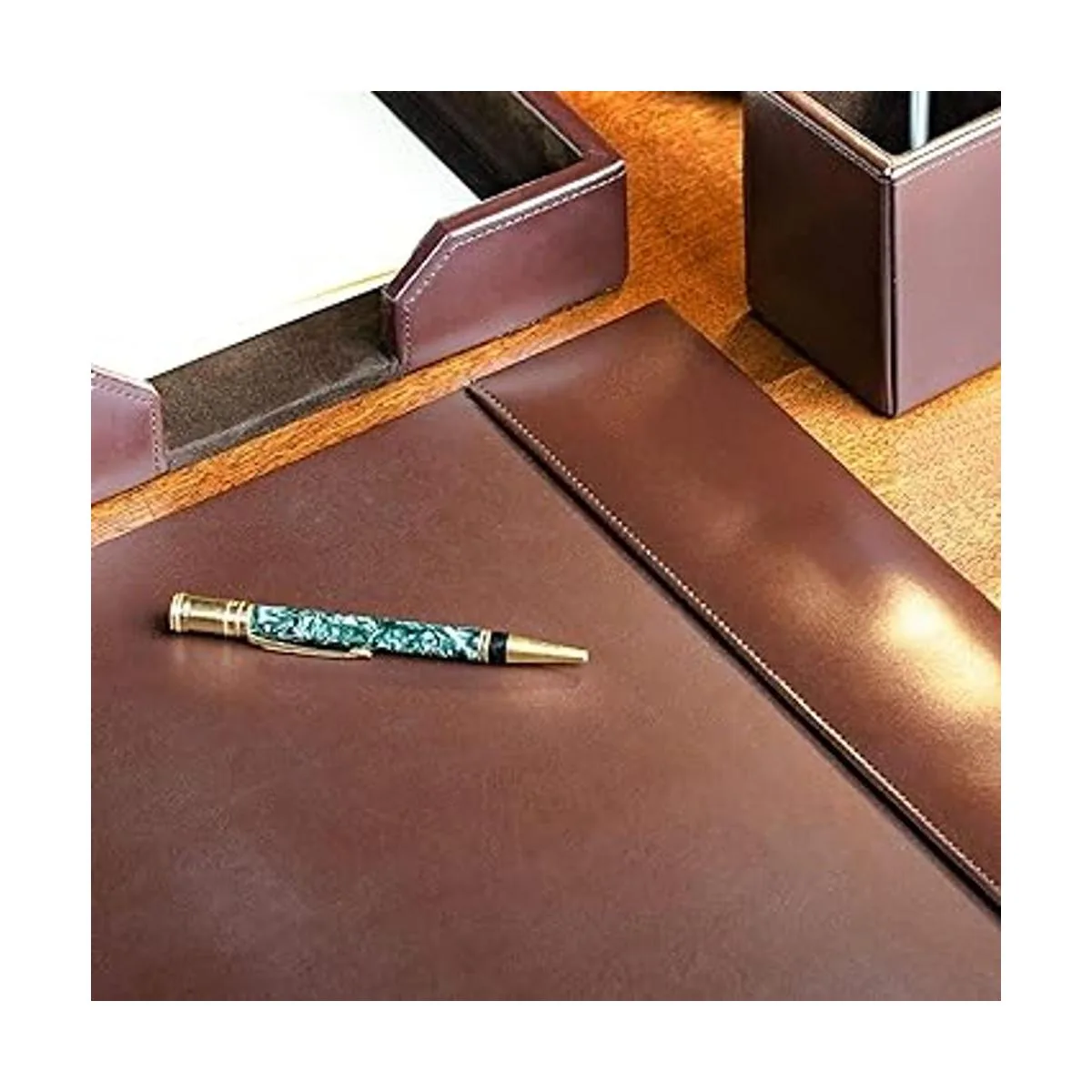 Dacasso Bloc unido con rieles laterales de cuero de lujo para escribir, 30 x 18 pulgadas, marrón