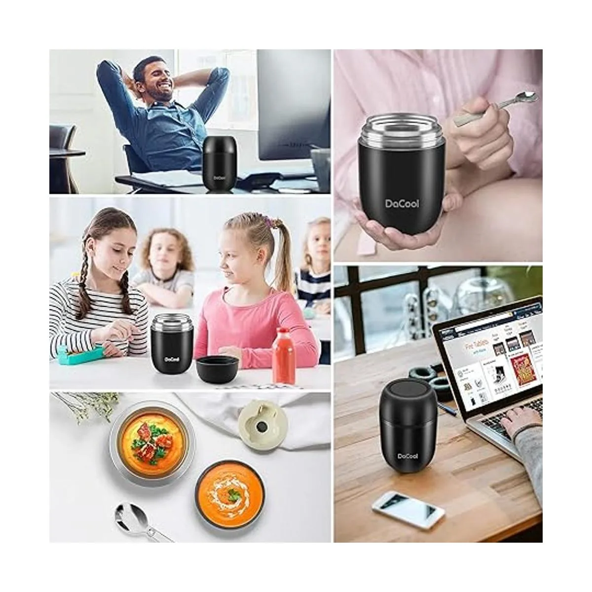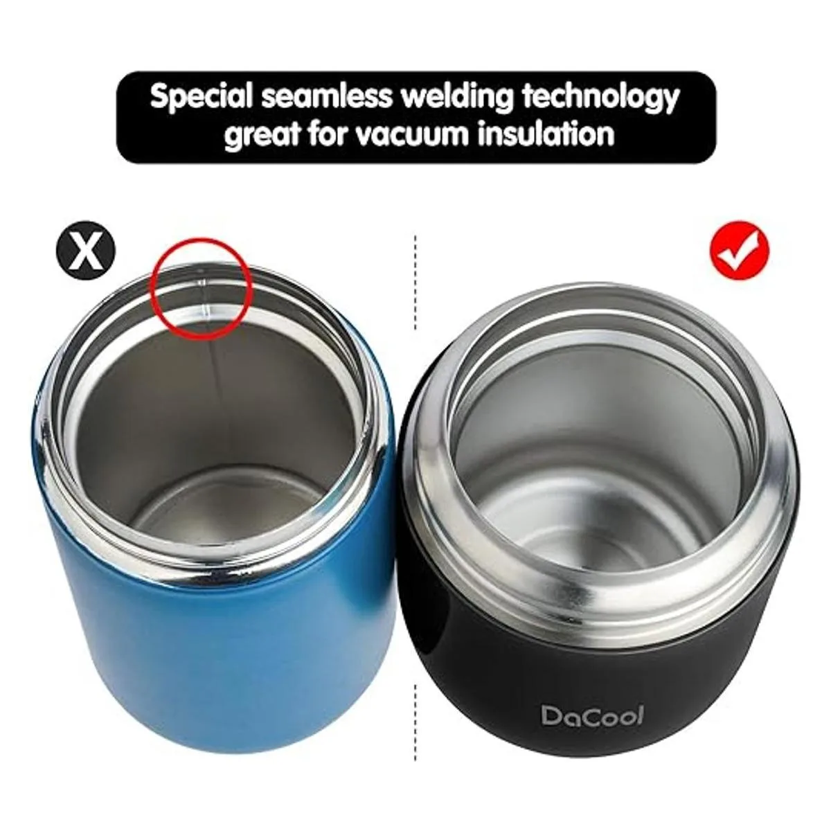 DaCool Recipiente de acero inoxidable con aislamiento al vacío para alimentos fríos y calientes, lonchera tipo bento, de 16 y 24 onzas, con cuchara, a prueba de fugas, para el colegio, oficina, pícnic, viajes y uso al aire libre, para niños y adultos