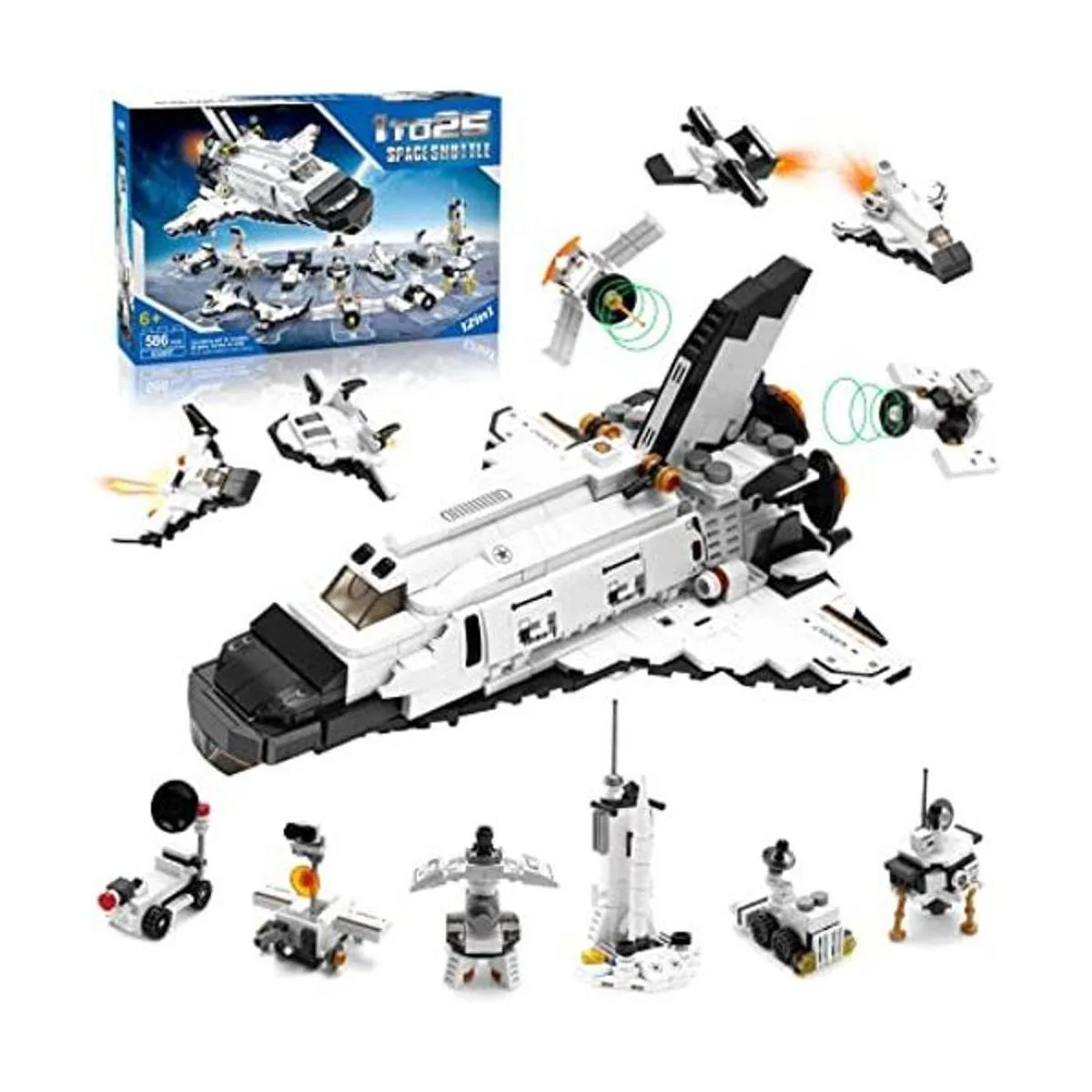DADMCFD Kit de construcción de juguete de transbordador espacial 25 en 1 para que los niños monten un transbordador espacial grande o 12 sondas espaciales pequeñas diferentes, el mejor regalo para niños y niñas de 6, 7, 8, 9, 10, 11, 12, 586 unidades