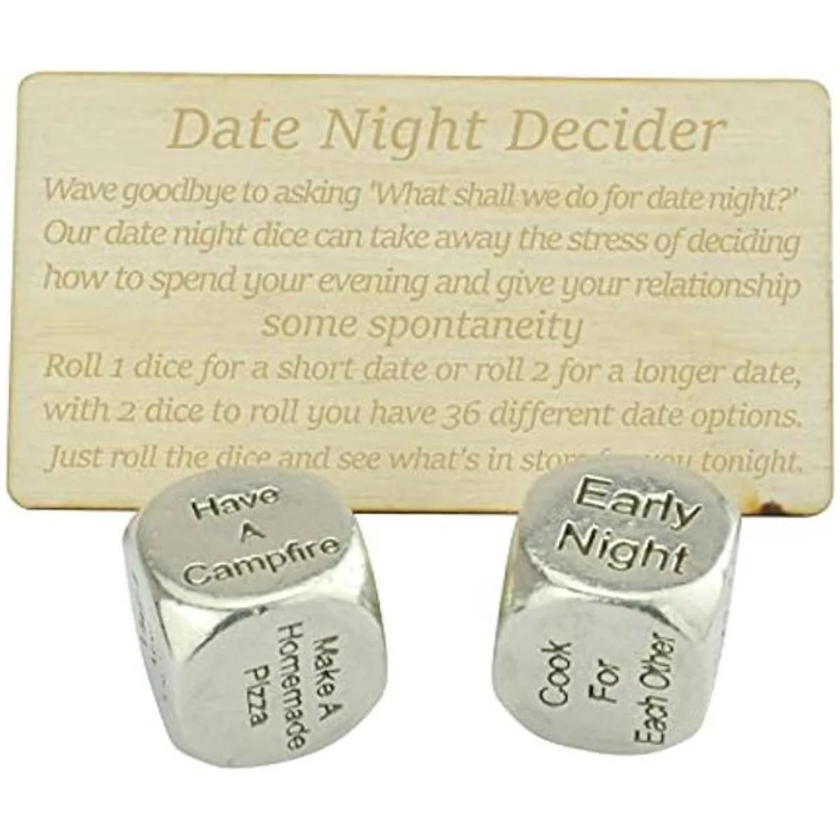 Dados de la noche de la fecha 2 dados de metal da 36 noches de fecha posibles, ideal para la noche
