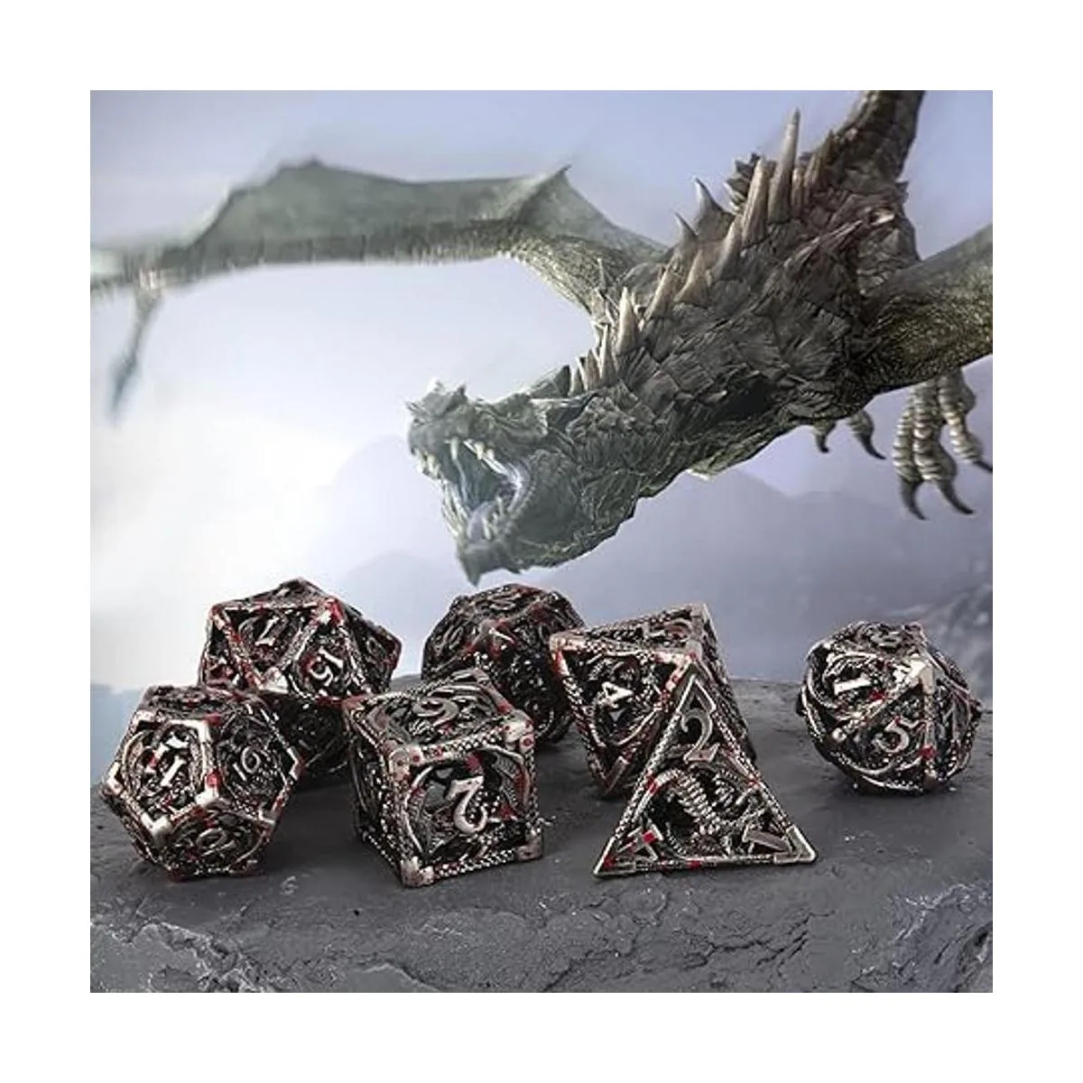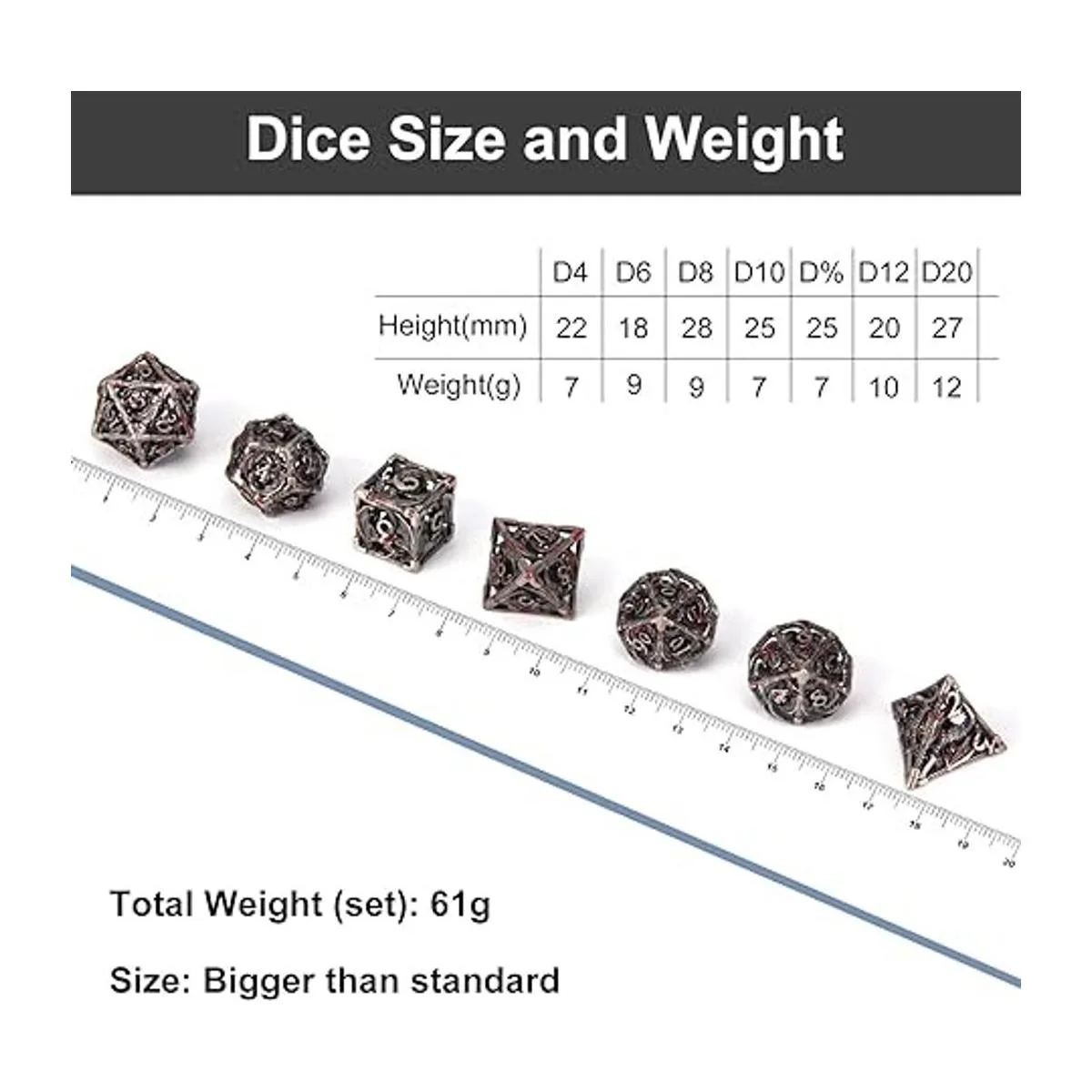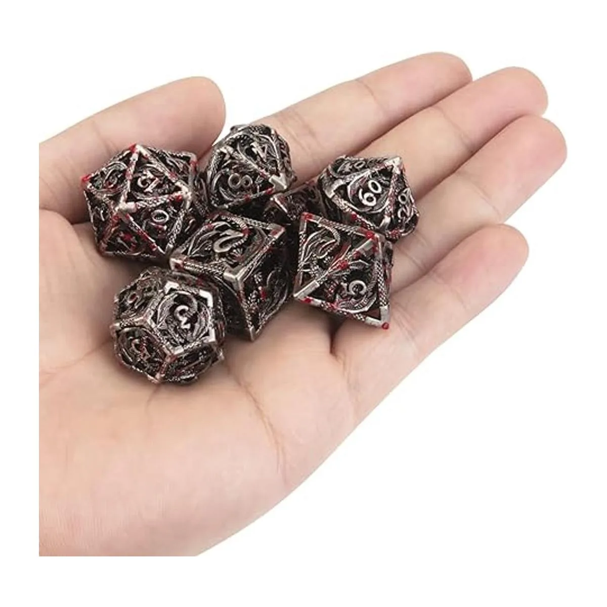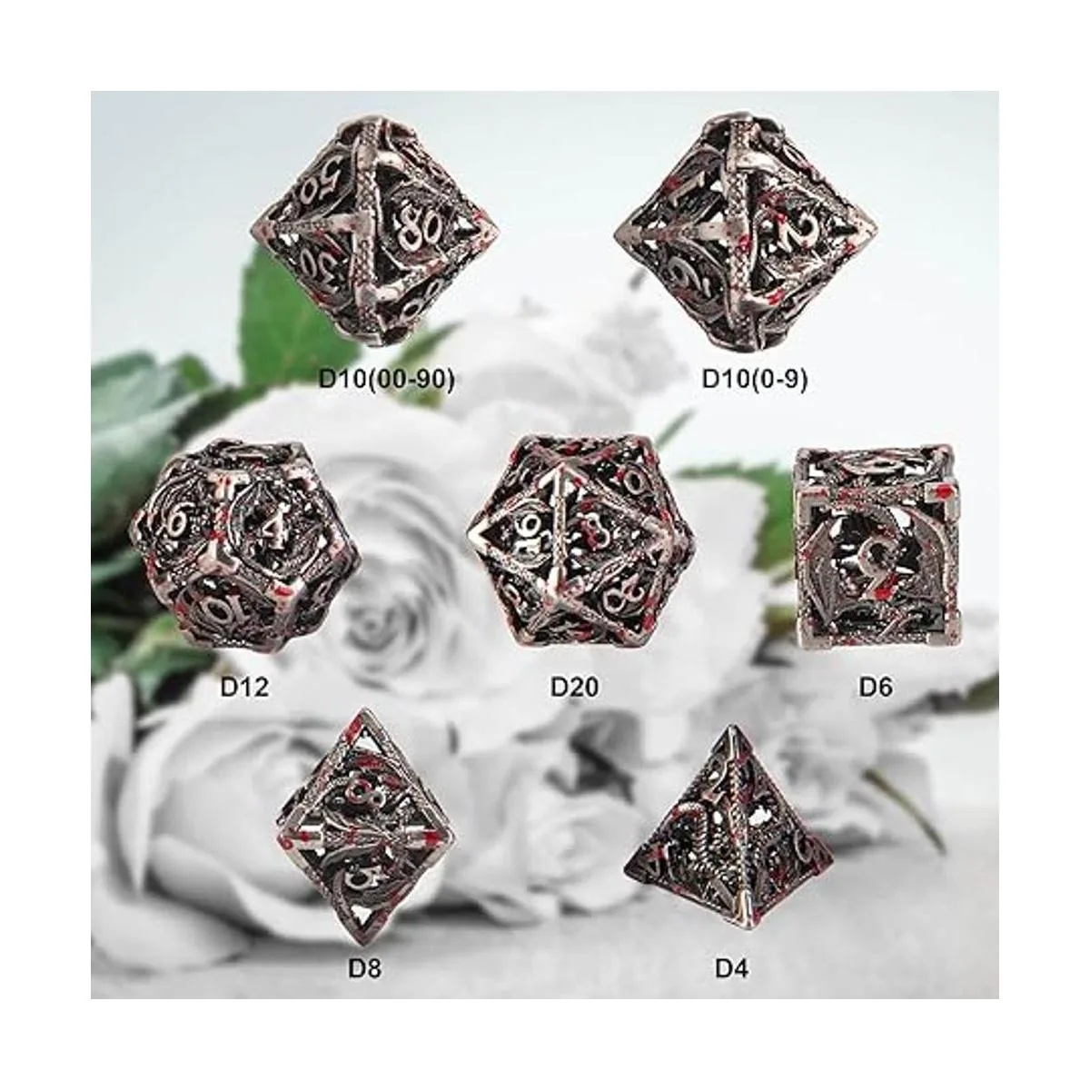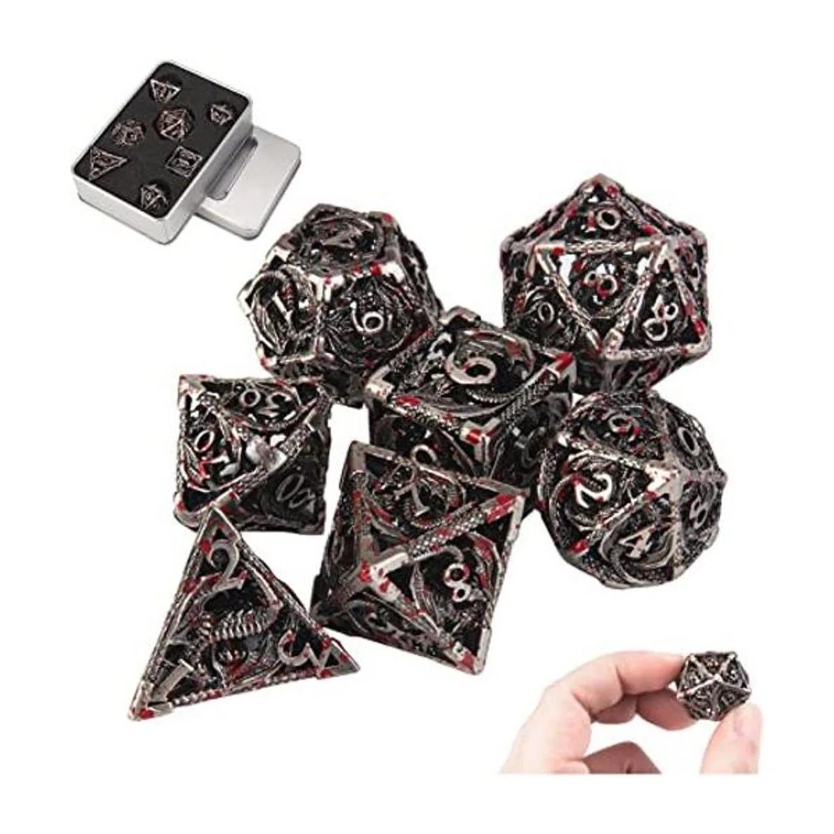 Dados DND, dados de metal huecos DD, juego de dados de mazmorras y dragones con caja de regalo, 7 piezas steampunk juego de dados poliédricos para RPG, MTG, Pathfinder, juego de dados D y D salpicados de sangre D20 D12 D10 D8 D6 D4 D