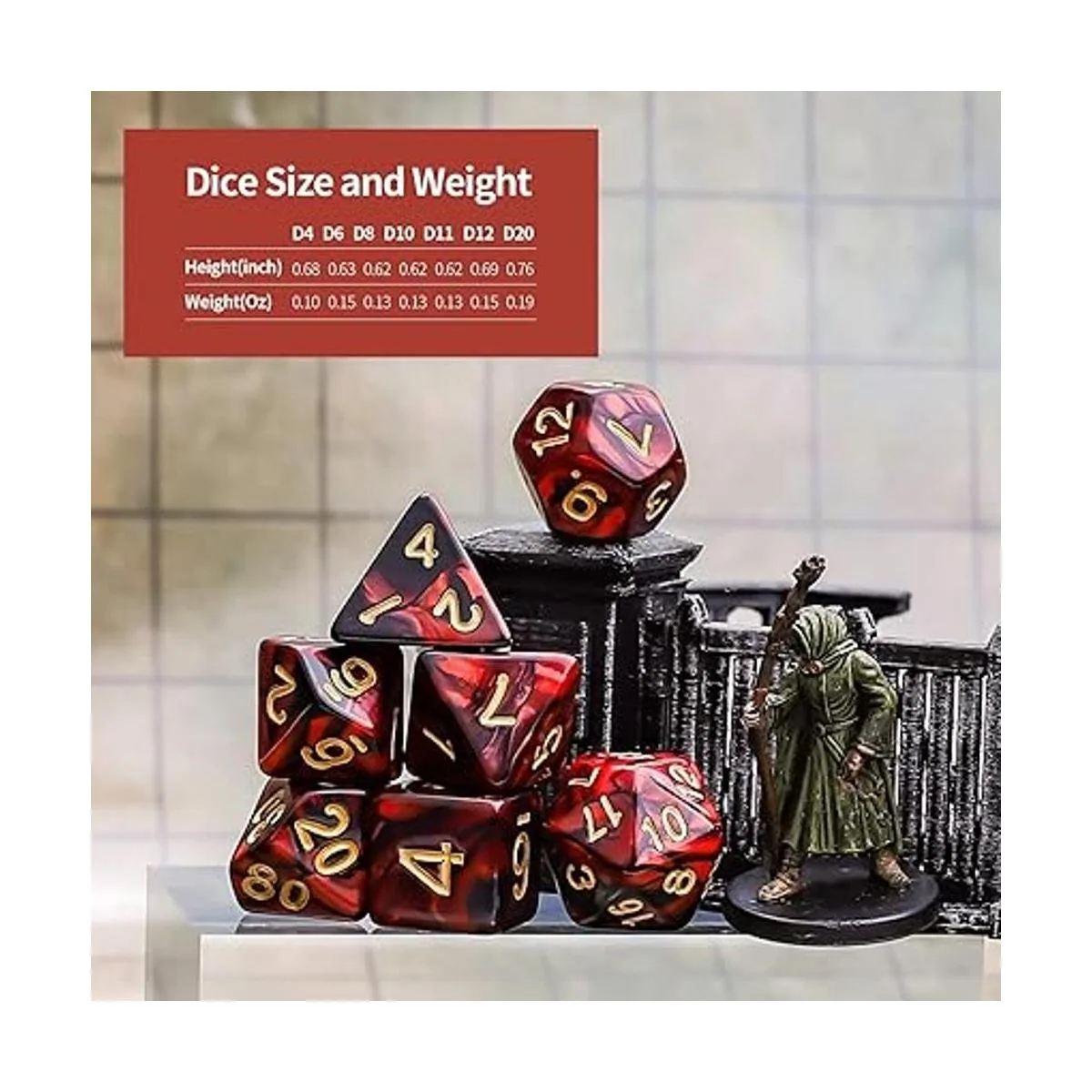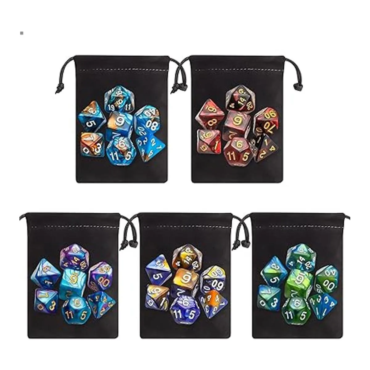 Duradero y portátil: Los dados de juego poliédricos están hechos de acrílico, duradero y ligero; vienen con 5 bolsas negras; tamaño de la bolsa es de 3.54 x 2.76 pulgadas, conveniente para almacenar y transportar.