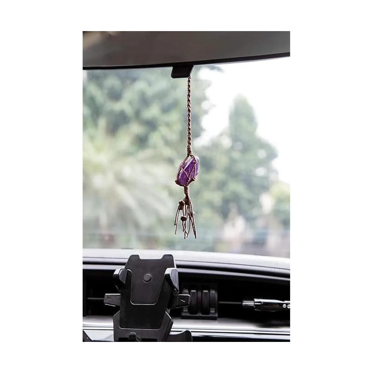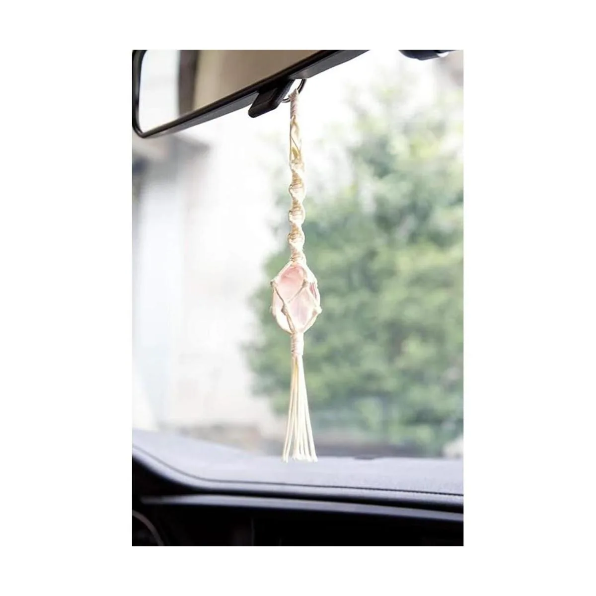 Colgante de cristal de macramé para coche que se cuelga fácilmente en el espejo retrovisor de tu coche, cristales pulidos combinados para cuerdas de cera, añade energía y magia cristalina a la decoración de tu coche o hogar