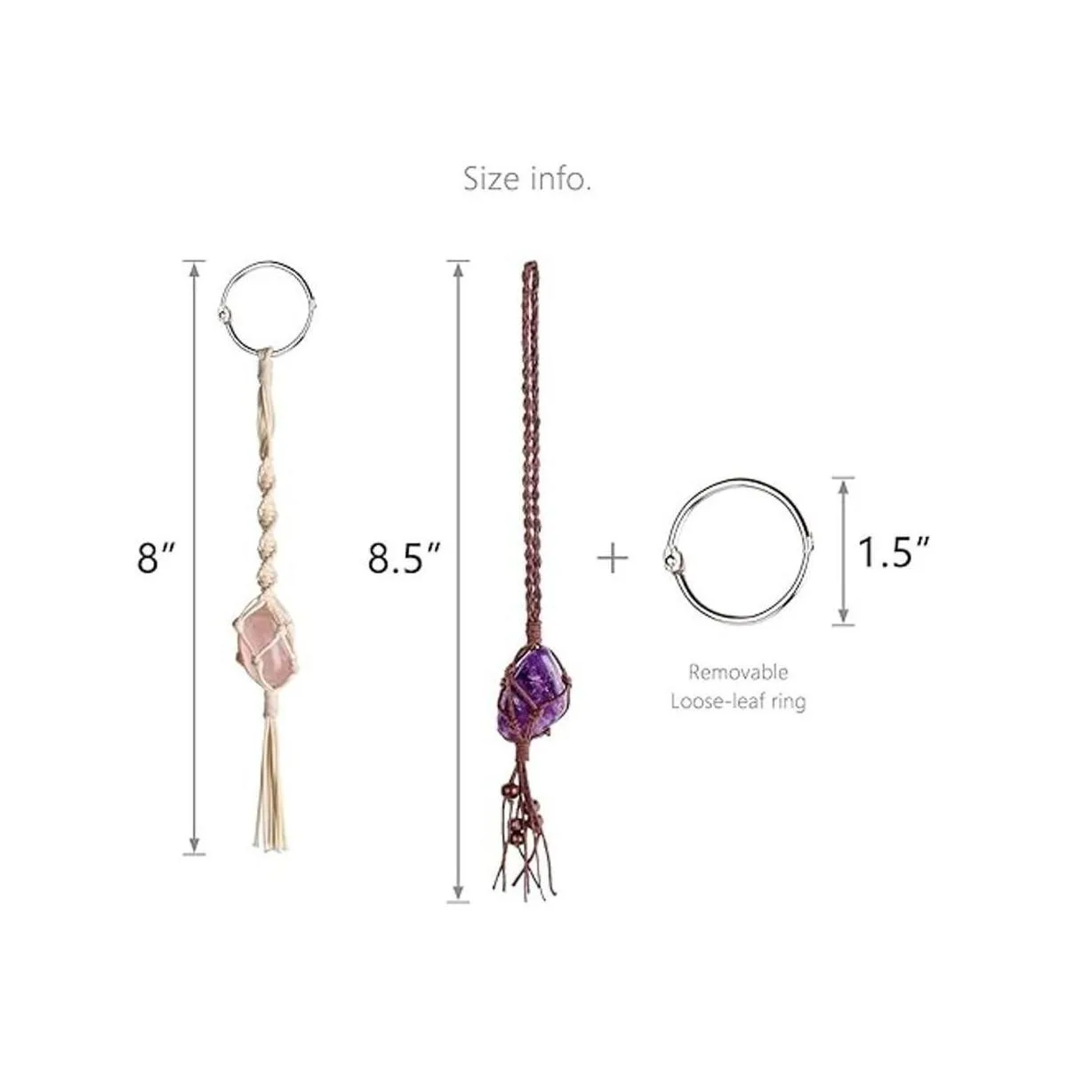Tamaño: longitud total de color blanco T es de 8.0 in, longitud total de color marrón T es de 8.5 in, diámetro del anillo de metal de 1.5 in.