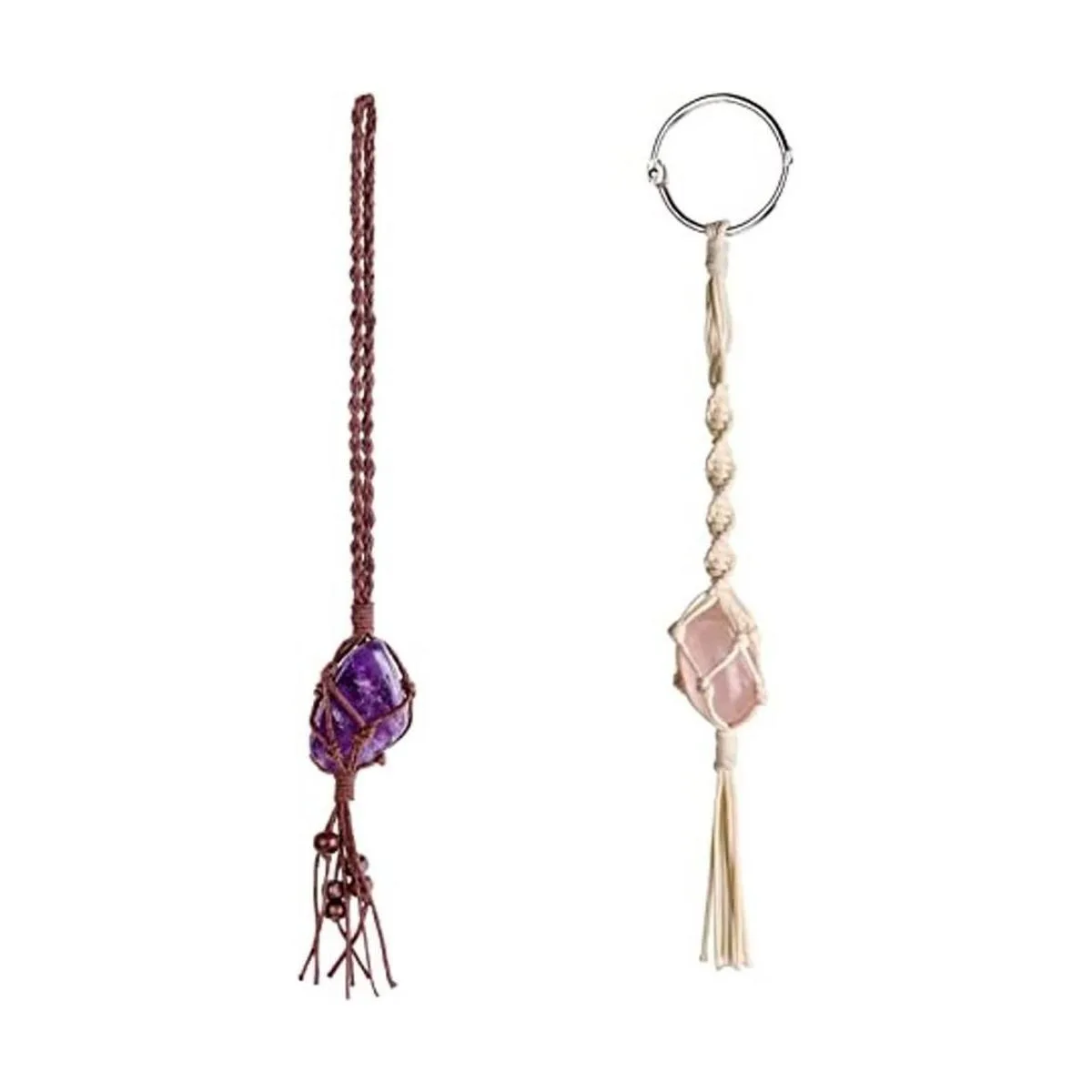 Juego de 2 colgantes de cristal para decoración de coche, un color es cuerda encerada blanca y cristal rosa, el otro color es cuerda encerada marrón y cristal morado. El cristal rosa simboliza el amor, y el cristal morado calma el estado de ánimo y el estrés. Estos son el regalo perfecto para el día de la madre, día del padre, pareja, amigos.