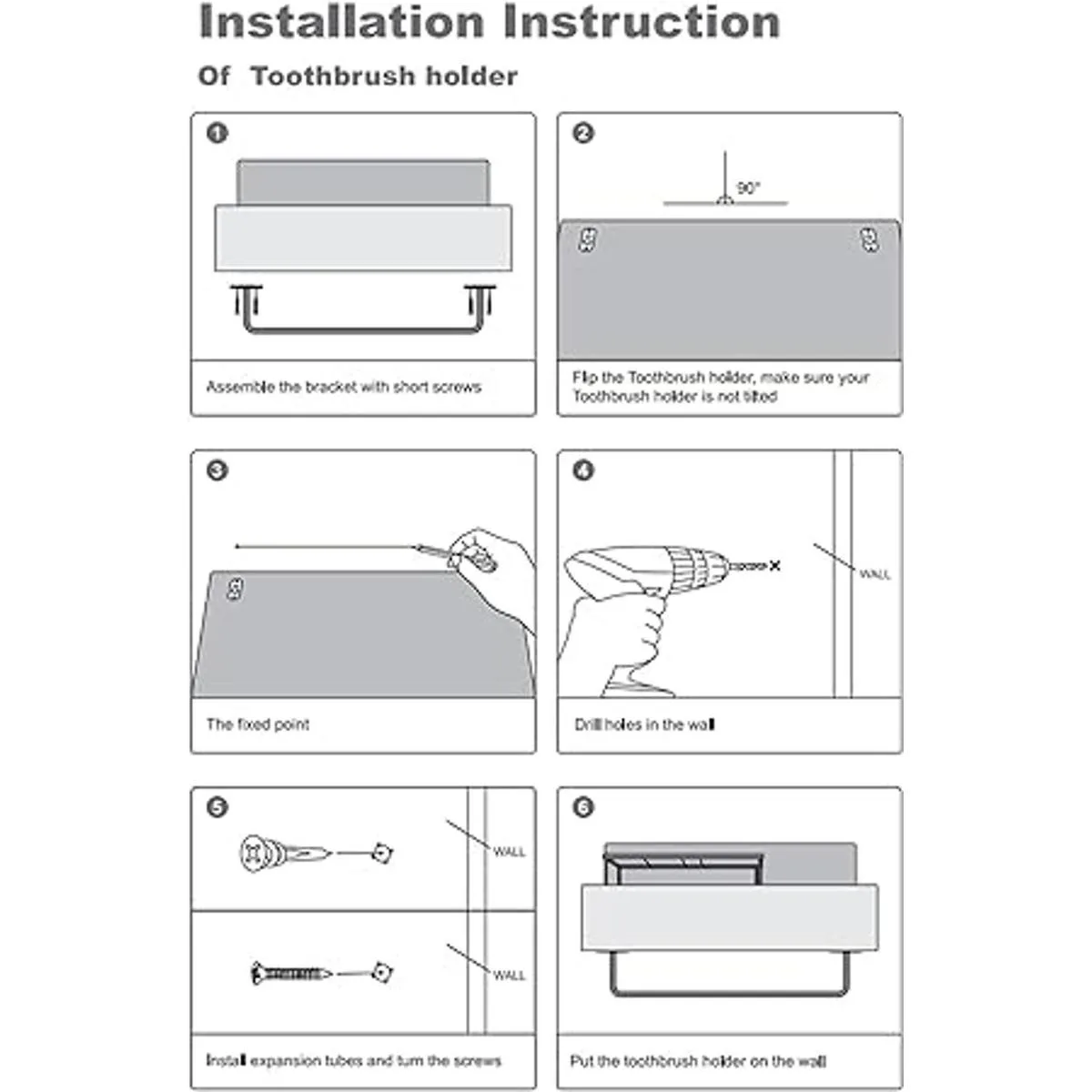 Fácil de instalar: el soporte para cepillos de dientes montado en la pared es fácil de instalar, simplemente taladra agujeros en la pared, luego instala los tubos de expansión y gira los tornillos. Se fija bien y lo suficientemente fuerte, no se cae.