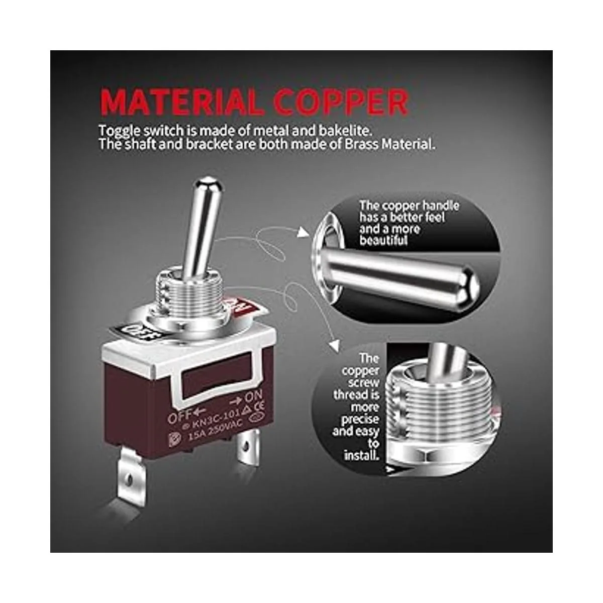 Características: el interruptor de palanca SPST impermeable está hecho de metal y material de baquelita. Aspecto delicado con construcción fuerte. Luce elegante y de alta gama en tu equipo.