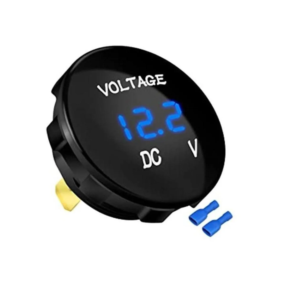 DaierTek Voltímetro con pantalla LED para automóvil de corriente continua de 12 a 24 V digital con panel de voltaje métrico, impermeable, universal con terminales y panel para barco, puerto deportivo con luz azul.