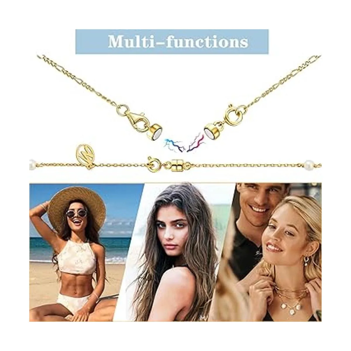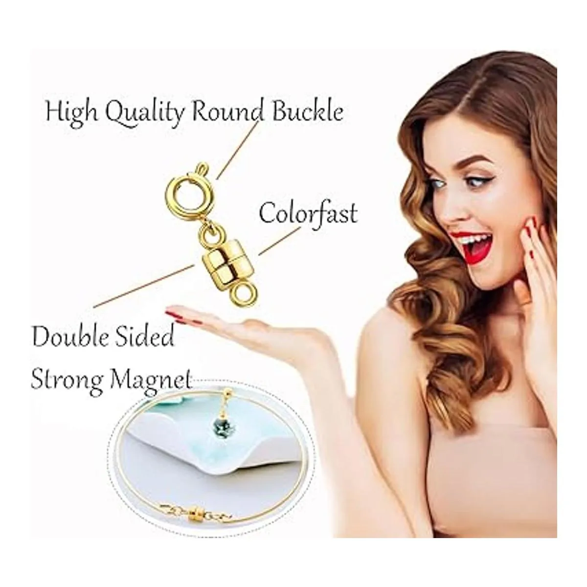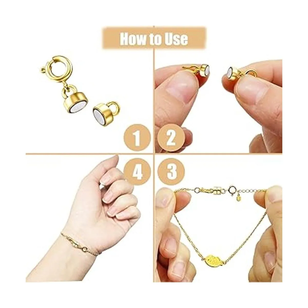 Fácil de usar: simplemente ata tus collares o pulseras favoritas alrededor de los lados izquierdo y derecho del cierre. Ligero y seguro. Pueden atraerse fácilmente juntos, solo necesitas un segundo en instalar y quitar, por lo que podría ahorrar mucho tiempo y energía, lo que te hace tener una buena experiencia