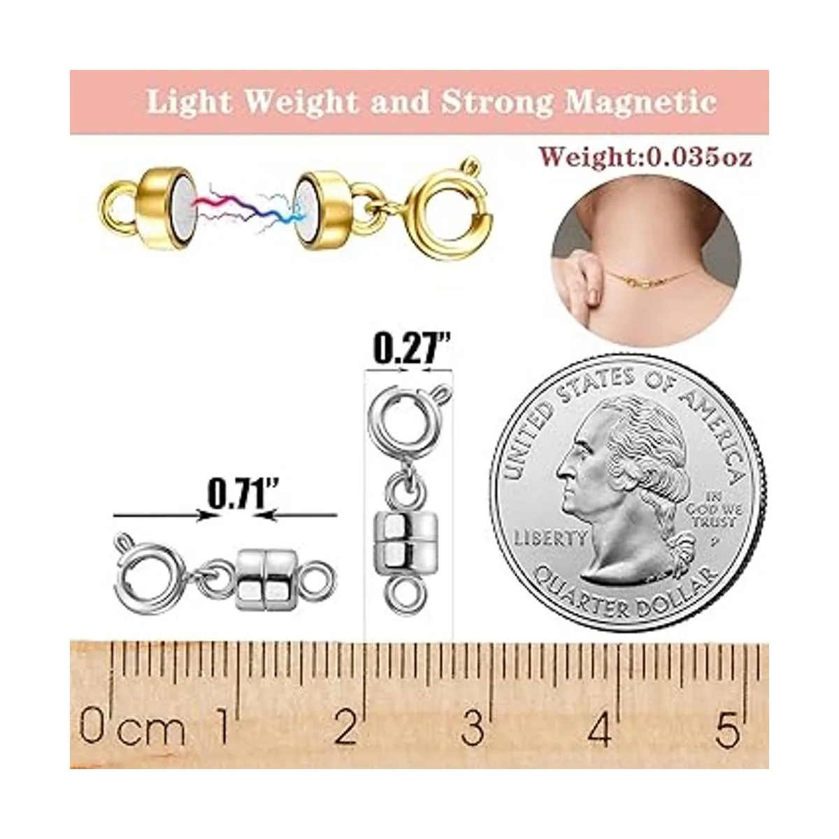 4 cierres magnéticos para collar: L 0.7 pulgadas, D 0.27 pulgadas. Solo 0.04 onzas de peso con fuerte magnético.