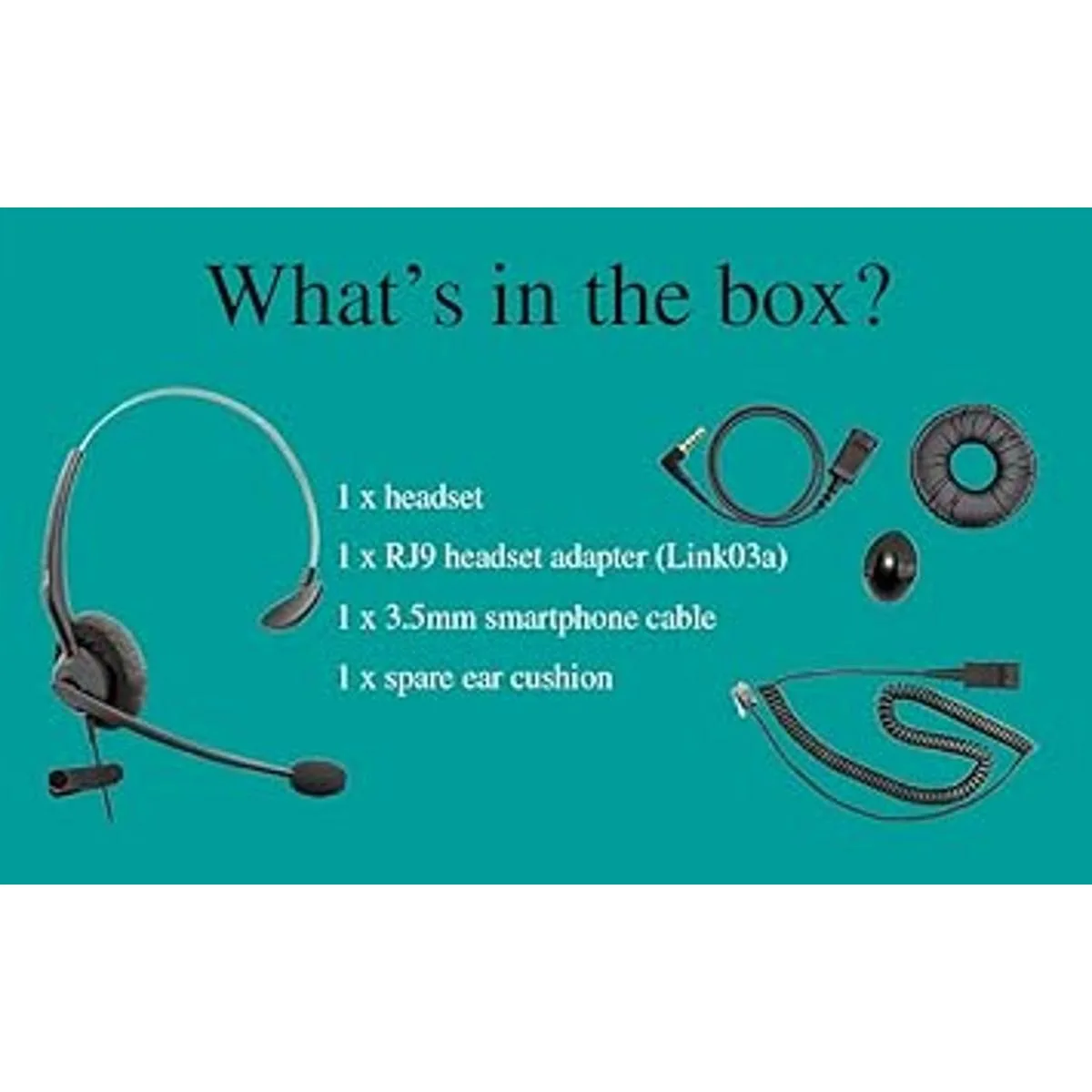 DailyHeadset RJ9 NC Auriculares para teléfono de oficina analógico Aastra Avaya Nortel Digium Polycom Mitel ShoreTel NEC Allworx Plus adaptador de 0.138 in