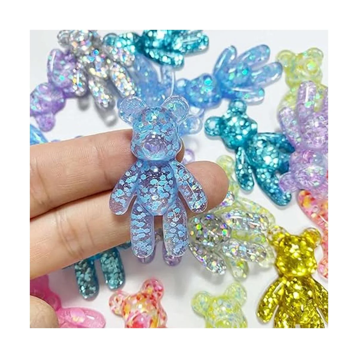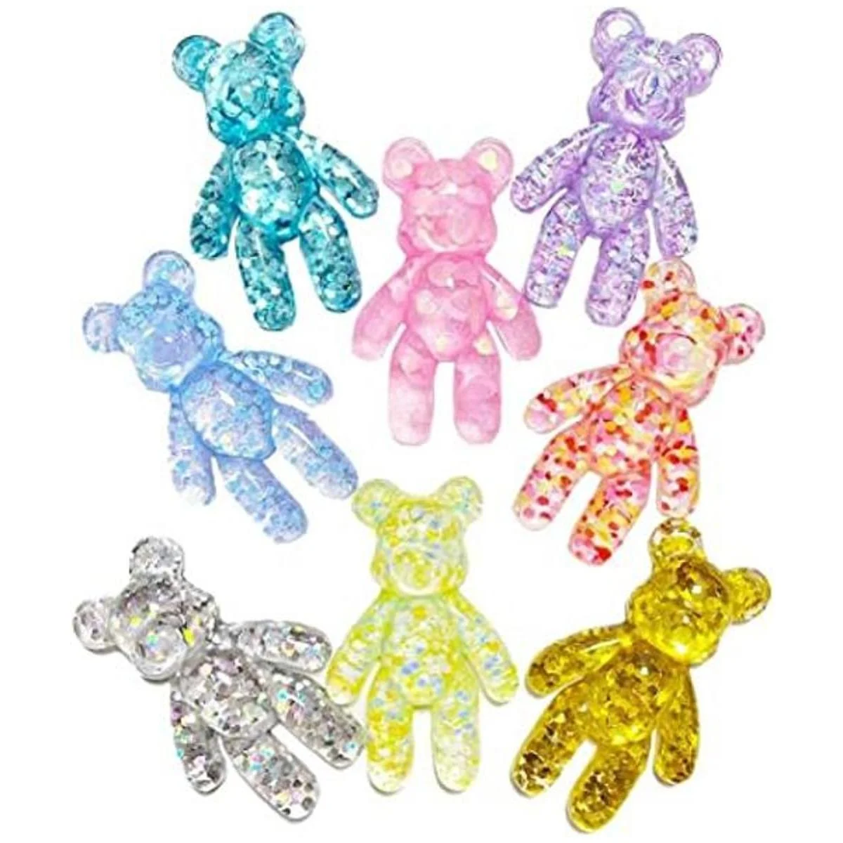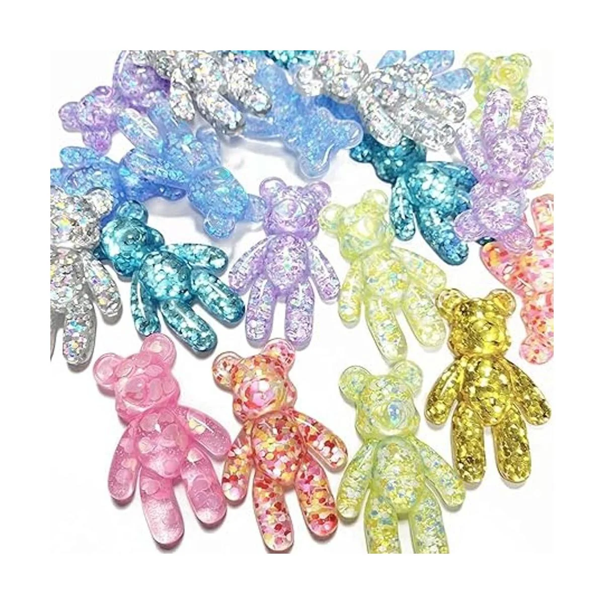 Daimay 20 piezas de 10 colores lindos colgantes de oso de dibujos animados, llavero de oso de dibujos animados, collar de caramelo de goma de resina, oso colorido para aretes, pulseras, fabricación de joyas, degradado con purpurina 3D