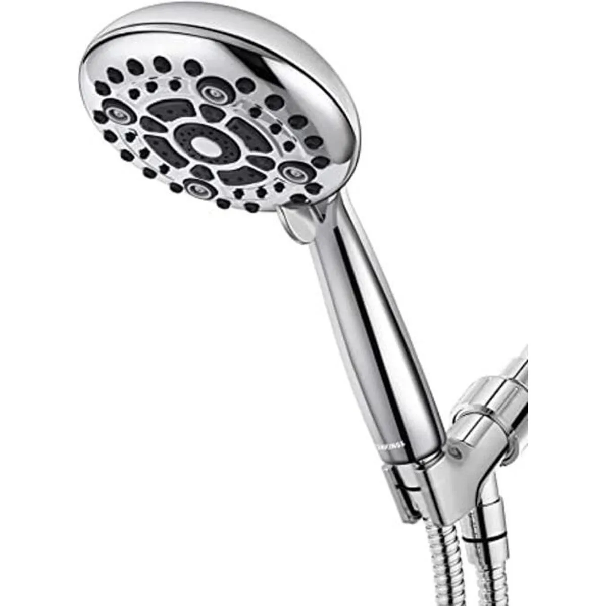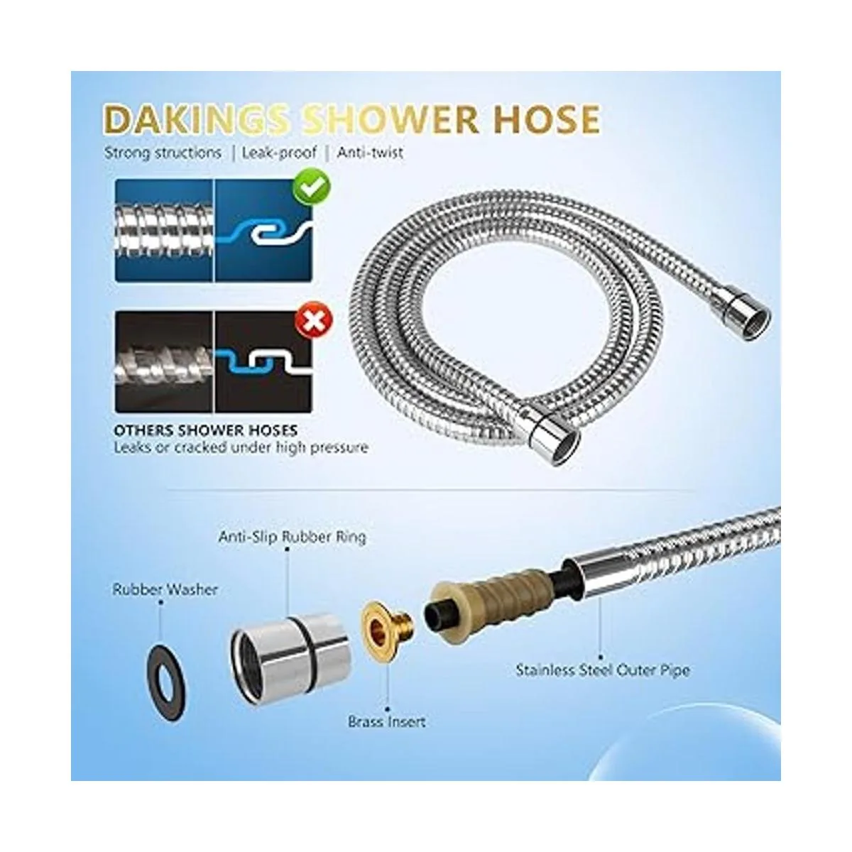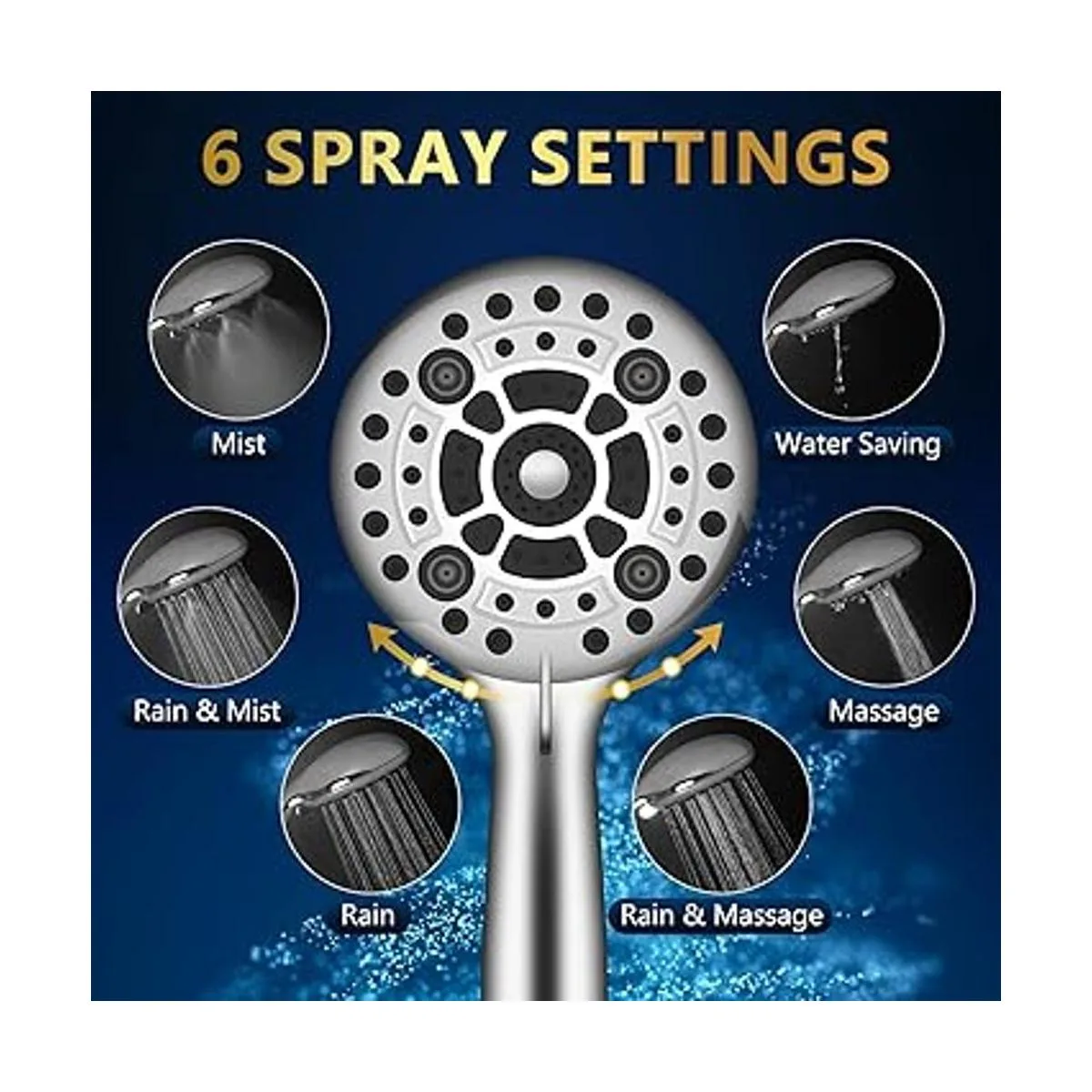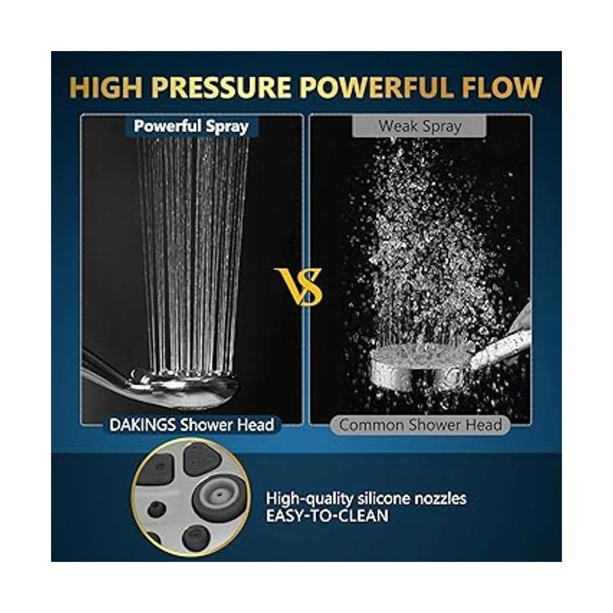 DAKINGS Juego de 6 modos de ducha de mano de alto flujo mejorado de 5 pulgadas con pulverizador de mano con cabezal de ducha de mano cromado de alta calidad, manguera de acero inoxidable de 60 pulgadas para baja presión de agua