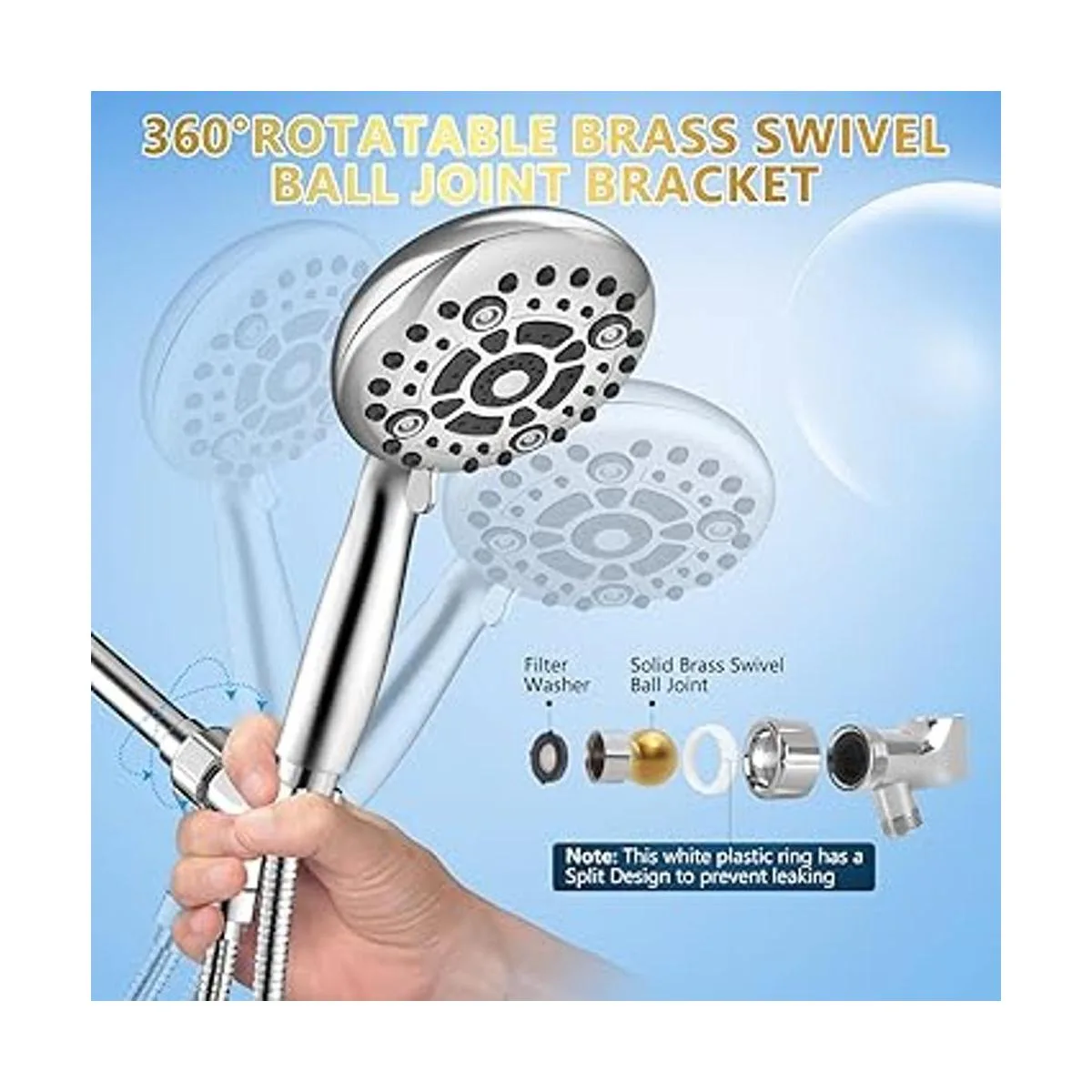 Material supremo: este cabezal de ducha de mano de alto flujo avanzado de 6 ajustes con boquillas antiobstrucciones, que pueden garantizar que las salidas de agua del cabezal no se bloqueen fácilmente. Acabado cromado brillante altamente pulido, rótula giratoria de latón macizo ajustable, manguera de acero inoxidable.