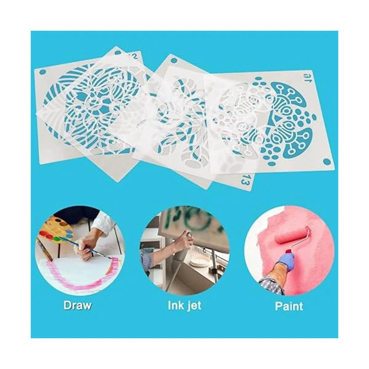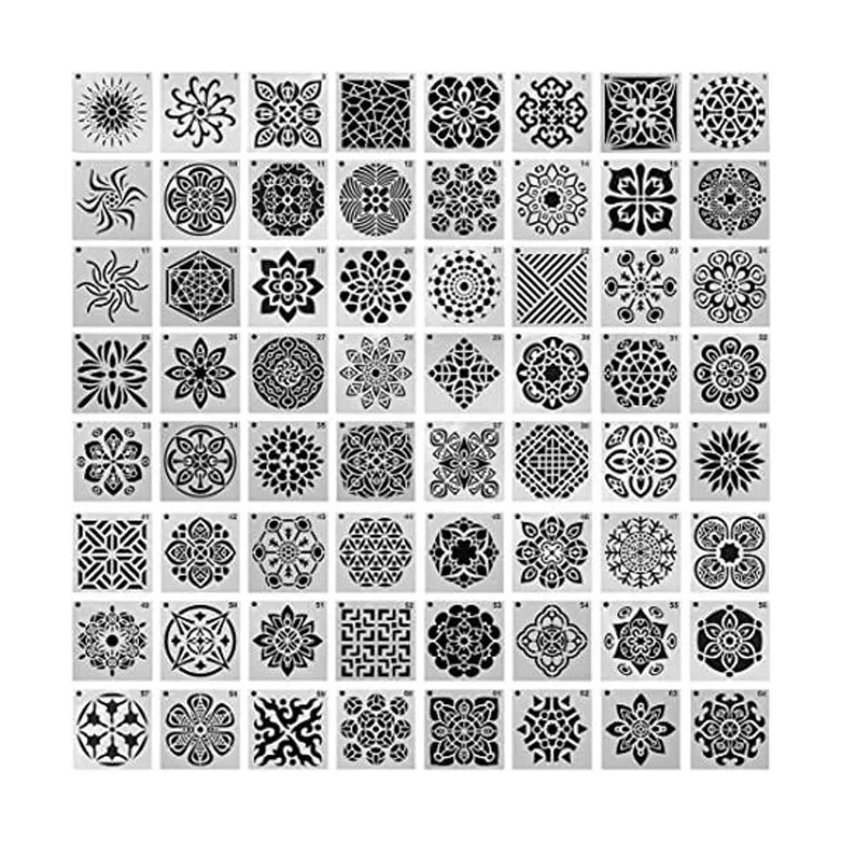 DaKuan Plantillas de pintura 3.543 in x 3.543 in, diseño de mandala para creación artística, murales, libros, telas, creación artística, reutilizable, 64 unidades