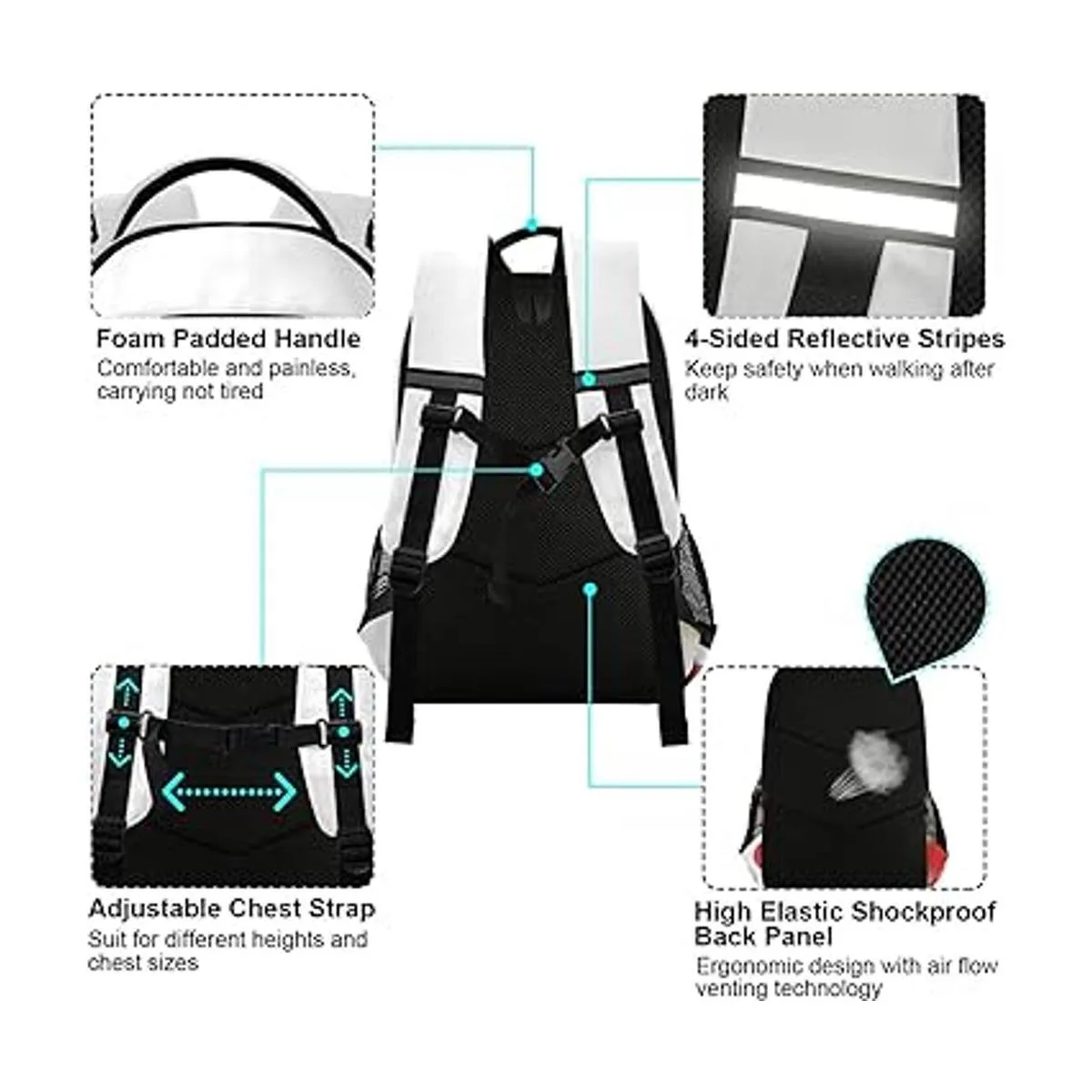 Bolsa: 1 bolsa principal, 1 bolsa frontal. Tipo de cierre: diseñado con tiradores de cremallera dobles. Correa: esponja gruesa y ancho ampliado para reducir la presión del hombro y mejorar la comodidad. Espalda: cojín de espalda tridimensional grueso, aumenta la comodidad y transpirabilidad de la espalda. Otros: la parte delantera de la mochila tiene tiras reflectantes, y también hay dos tiras reflectantes en la correa y los bolsillos de malla en ambos lados.
